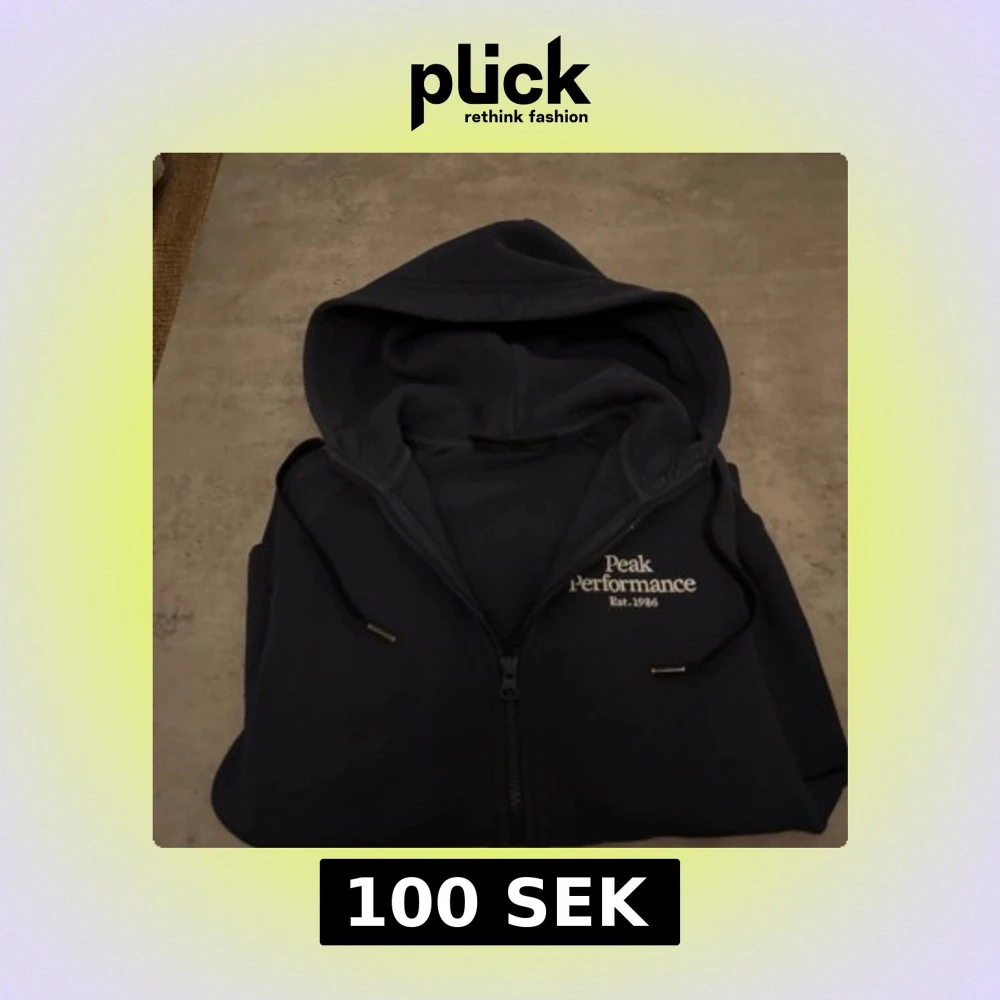 Mörkblå hoodie från Peak Performance med dragkedja och huva. Tröjan har snörning i huvan, fickor framtill och logga broderad på bröstet. Perfekt för kyliga dagar och enkel att matcha med det mesta. Den är lite sol blekt där nere vid fickorna men de är inte nått som man tänker på men annars så är de Riktigt bra