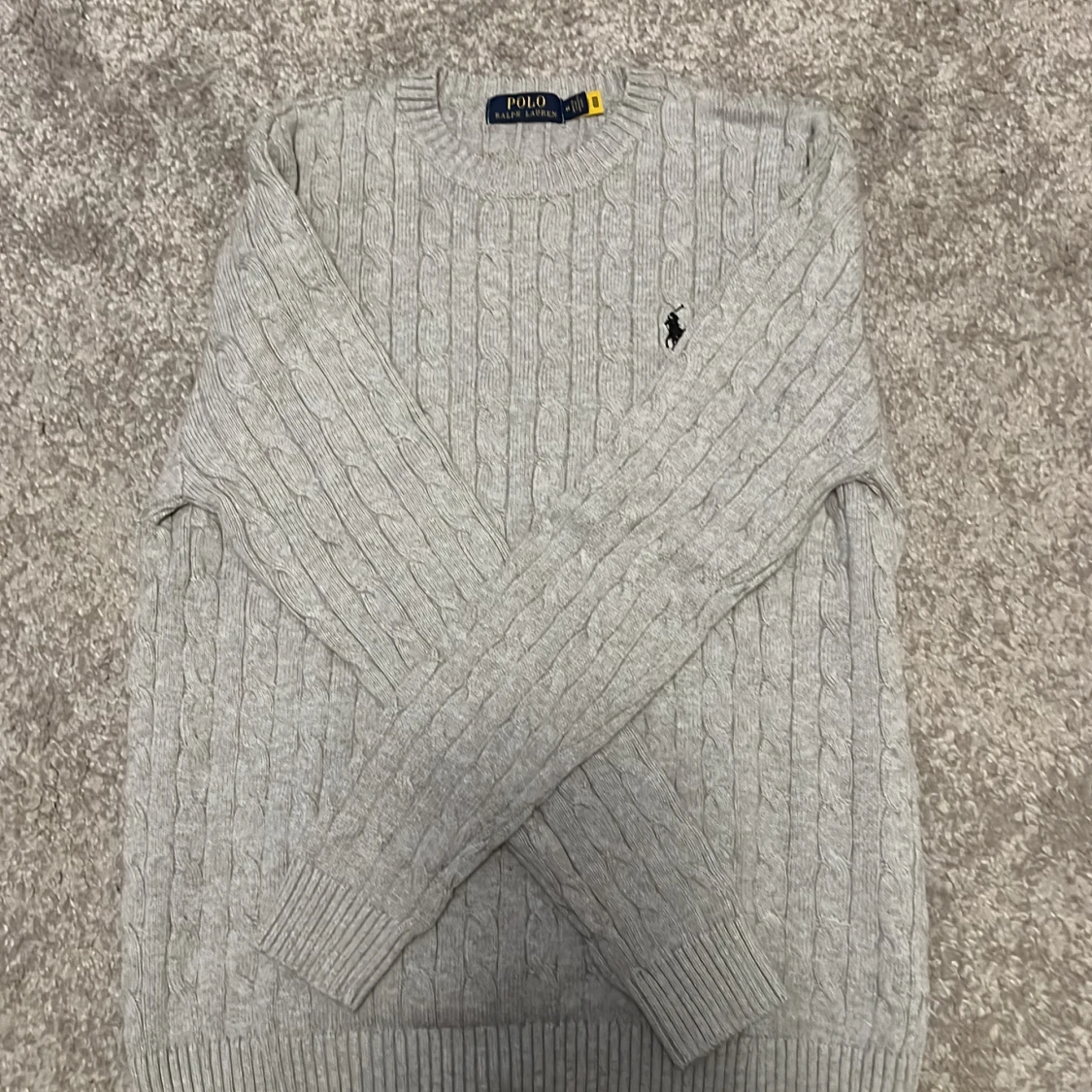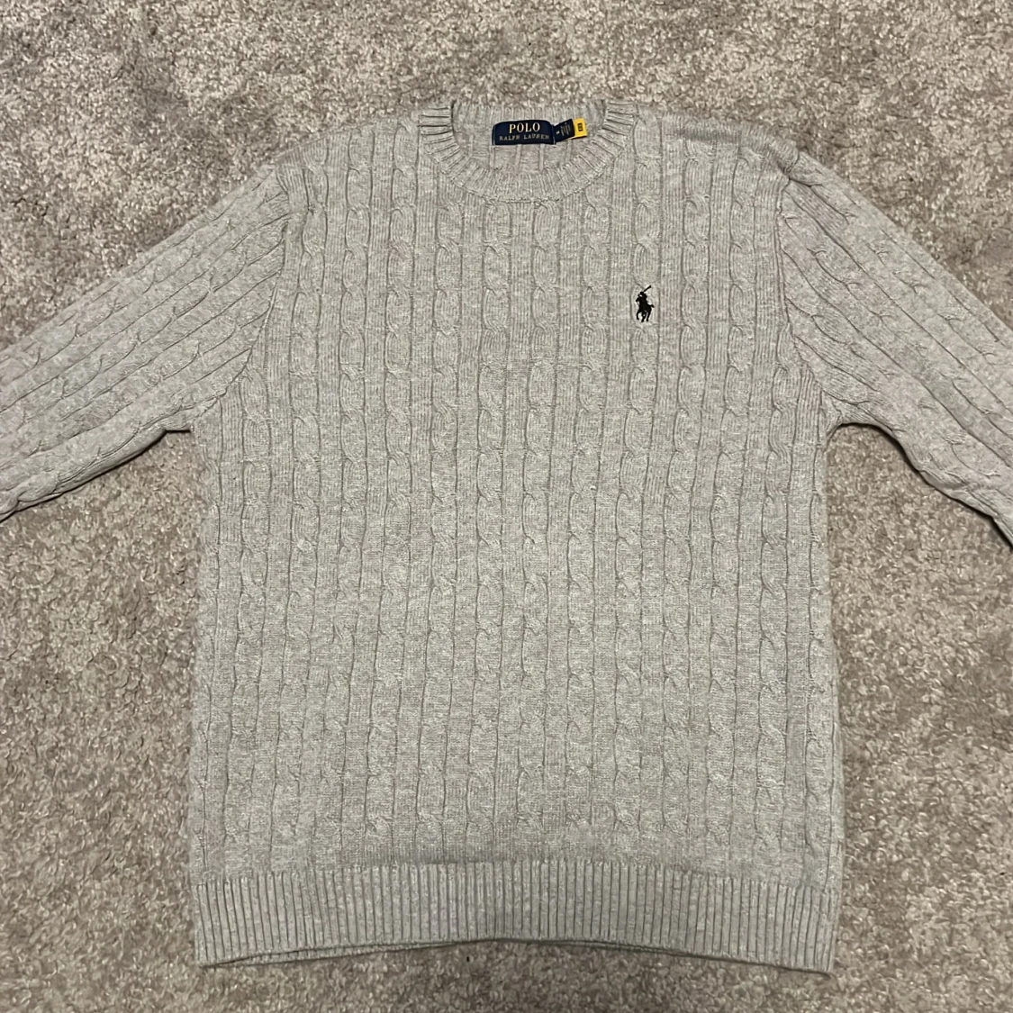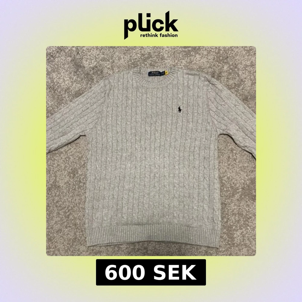 Stilren Ralph lauren cable knit. Fick i julklapp och säljer därför den inte passar längre. Passar runt längden 180+ och är i storlek M. Då jag fick den i julklapp kan jag inte stå för autenticiteten men med tanke på materialet och påsarna jag fick den i kan jag nog garantera äkthet. Endast använd en gång! Tveka inte att höra av er vid frågor. Prutning går nog bra!