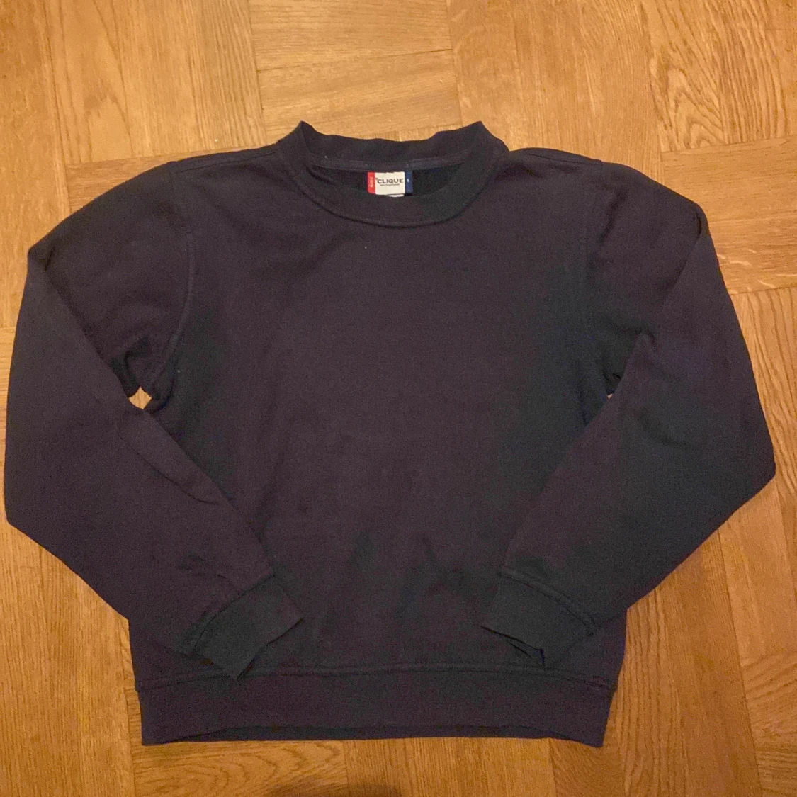 Säljer en stilren mörkblå sweatshirt från Clique i storlek S. Tröjan har en klassisk design med rund hals och långa ärmar. Perfekt för en avslappnad look. Riktigt grisch, laidback