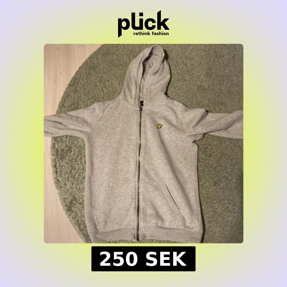 Säljer en grå hoodie från Lyle & Scott Junior med dragkedja framtill och huva. Tröjan har två fickor och en liten gul logga på bröstet. Perfekt för en avslappnad stil.