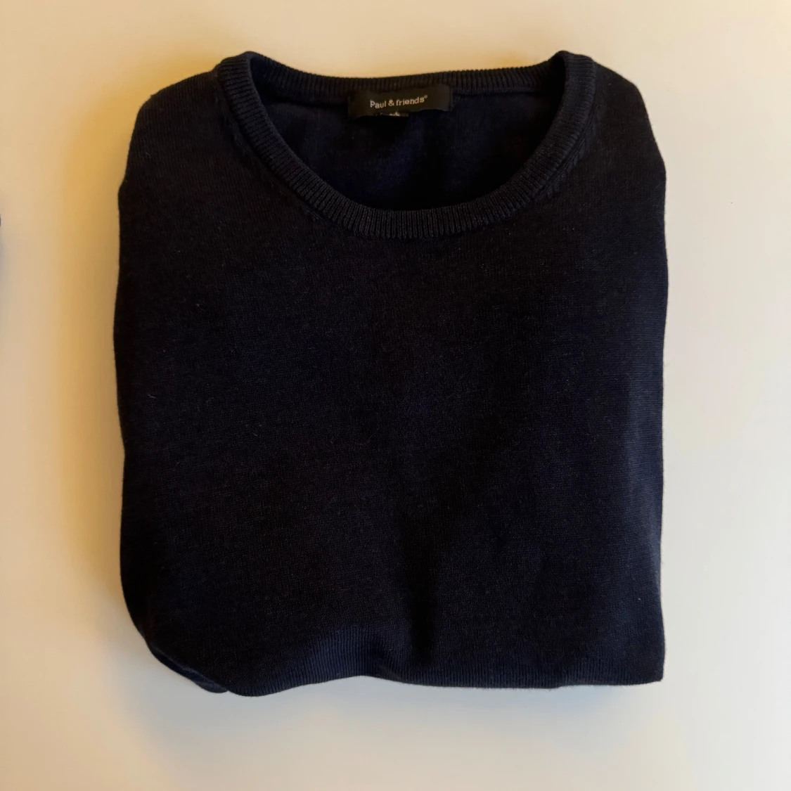 Snygg mörkblå rundhalsad tröja från Paul & friends i 100% merinoull. Passar perfekt nu till höst och vintern. Tröjan är knappt använd och passar både S och M. Nypris 1600kr