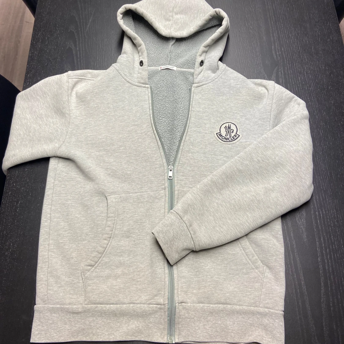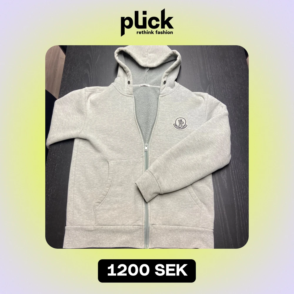 Säljer en snygg och bekväm grå hoodie från Moncler. Storlek: M, Scan kod, bara att höra av sig vid funderingar, fler bilder kan ordnas