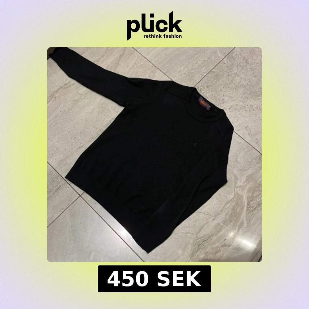 Klassisk svart stickad tröja från Morris i 100% merinoull. Tröjan har rund halsringning, diskret broderad logga på bröstet och ribbade muddar vid ärmslut och nederkant. Perfekt för lager-på-lager och stilren look.
