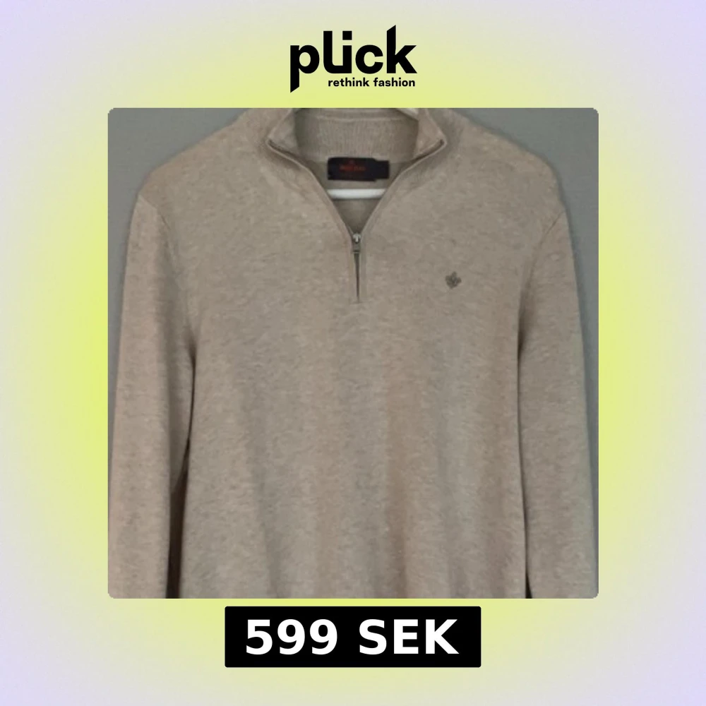 Säljer en stilren beige tröja från Morris i 100% pima bomull. Tröjan har half zip-dragkedja, lång ärm och en broderad logga på bröstet. Perfekt för lager-på-lager och passar till både jeans och chinos. Tröjan är använd 1 gång och är som ny. Pris kan diskuteras vid snabb affär.