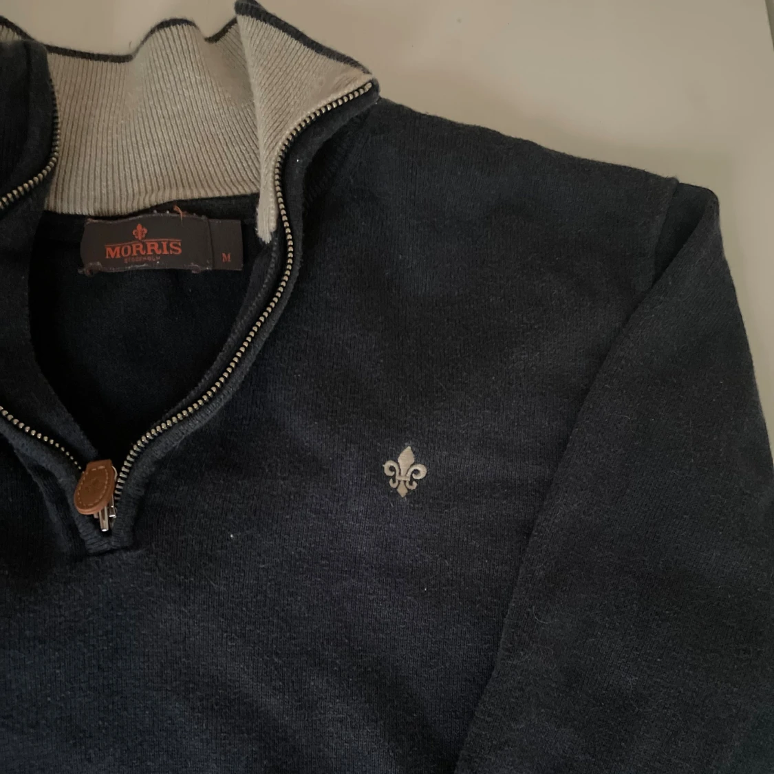 Mörkblå half zip tröja från Morris