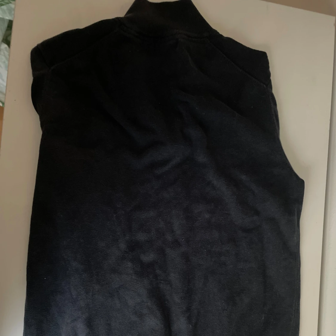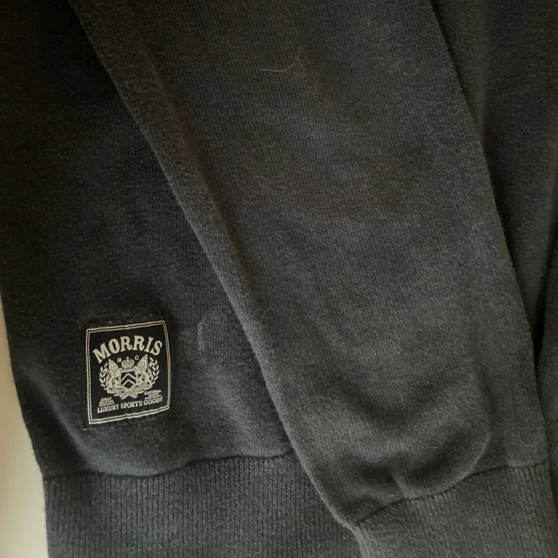 Mörkblå långärmad tröja från Morris med half zip och ribbad krage i kontrastfärg. Tröjan har en liten broderad logga på bröstet och en patch nertill. Perfekt för lager-på-lager och snygg till jeans. Tröjan är i storlek M men sitter som S