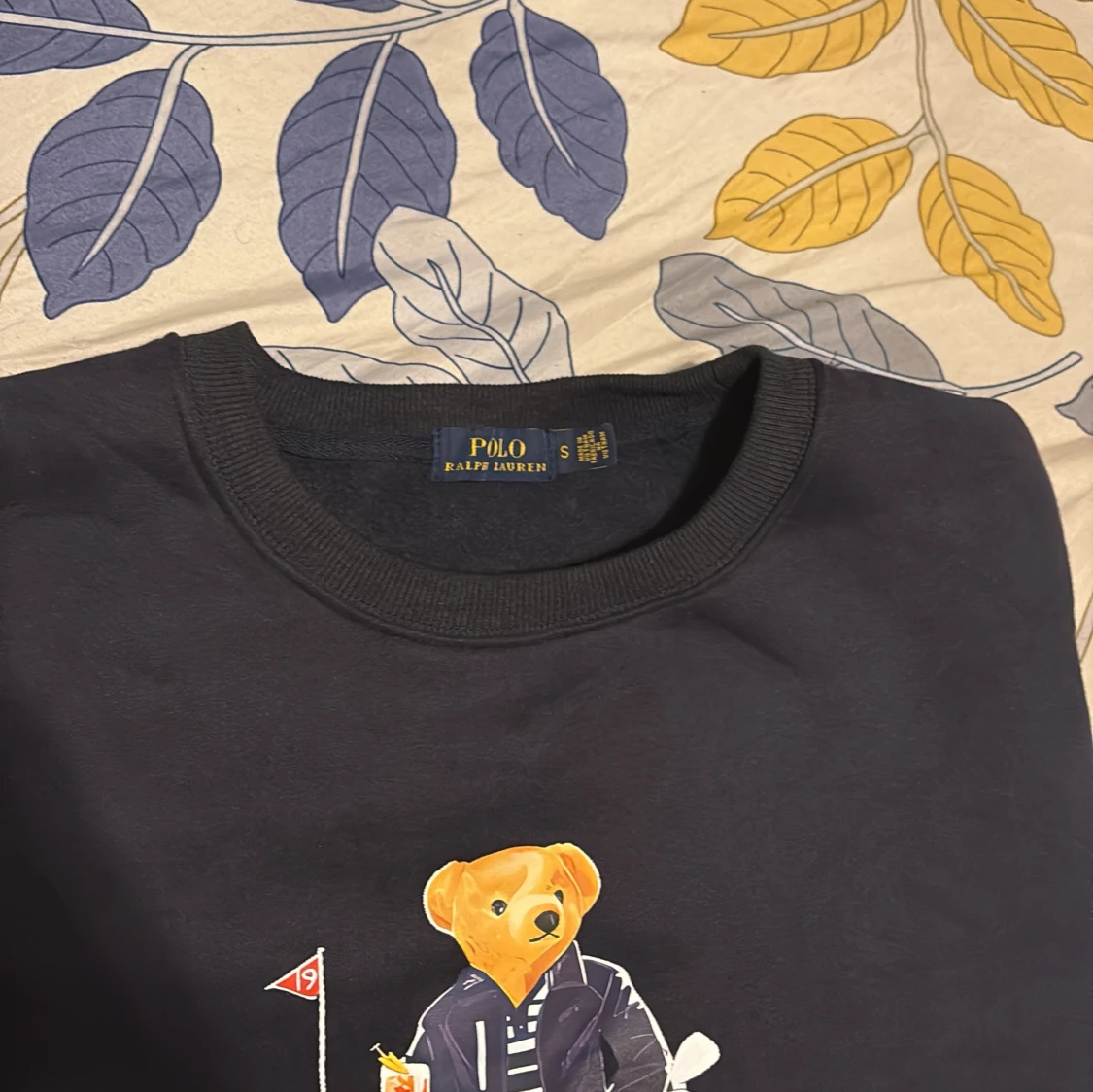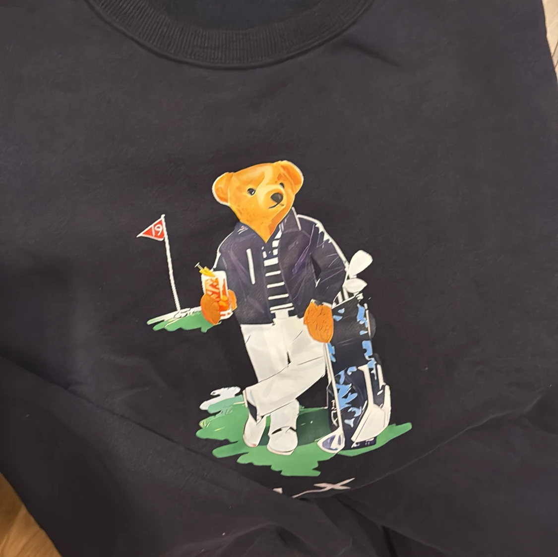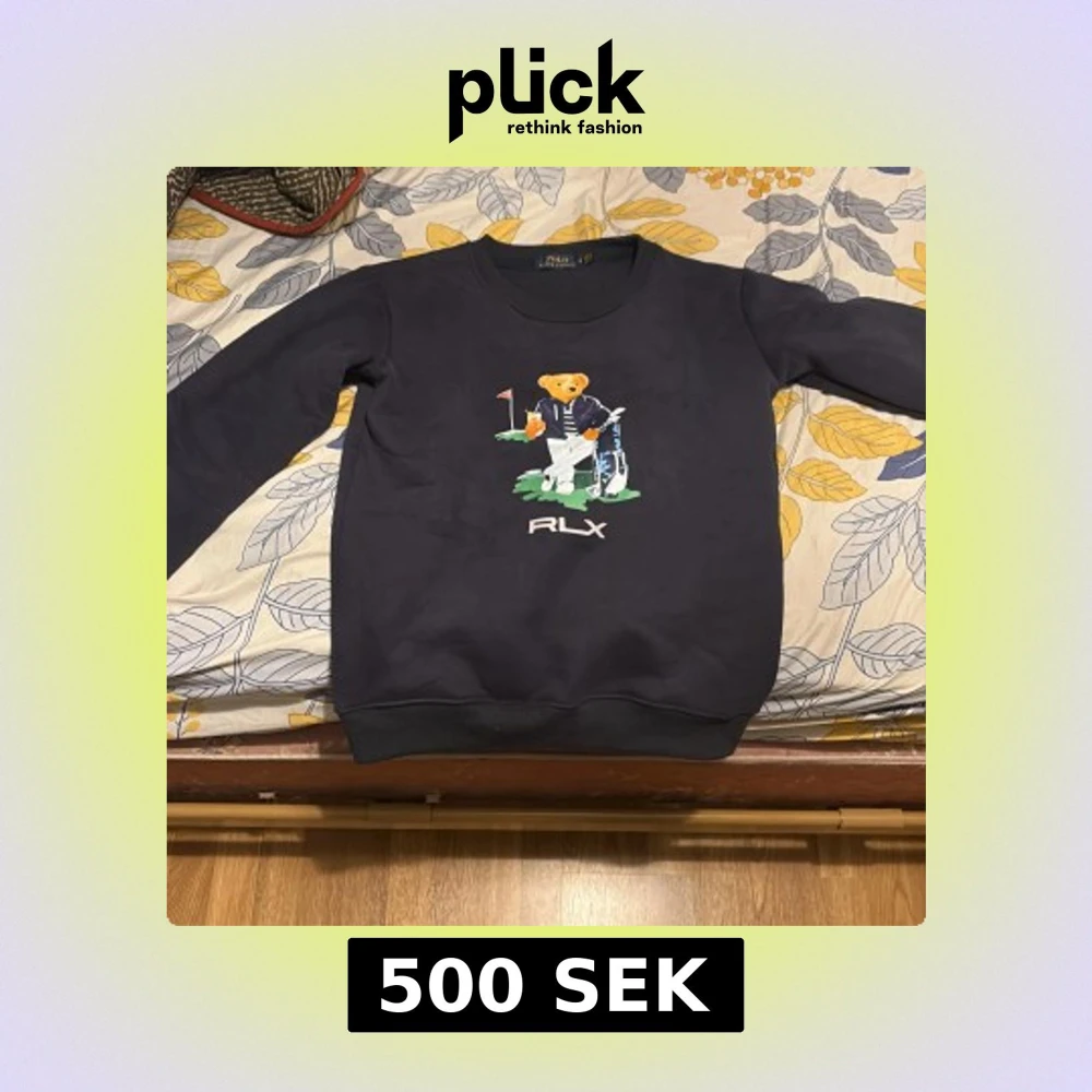 Mörkblå sweatshirt från Polo Ralph Lauren med ikoniska Polo Bear-trycket på bröstet. Tröjan har rund hals, långa ärmar och RLX-logga under motivet. Perfekt för dig som gillar sportig och preppy stil.