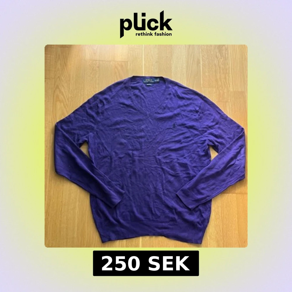 Säljer en lila v-ringad tröja från Polo Ralph Lauren med broderad logga på bröstet. Tröjan har lång ärm och är tillverkad i mjuk bomull, perfekt för lager-på-lager. Enkel och stilren design som funkar till många outfits. Tyvärr finns inte polo loggan på ryggan kvar.