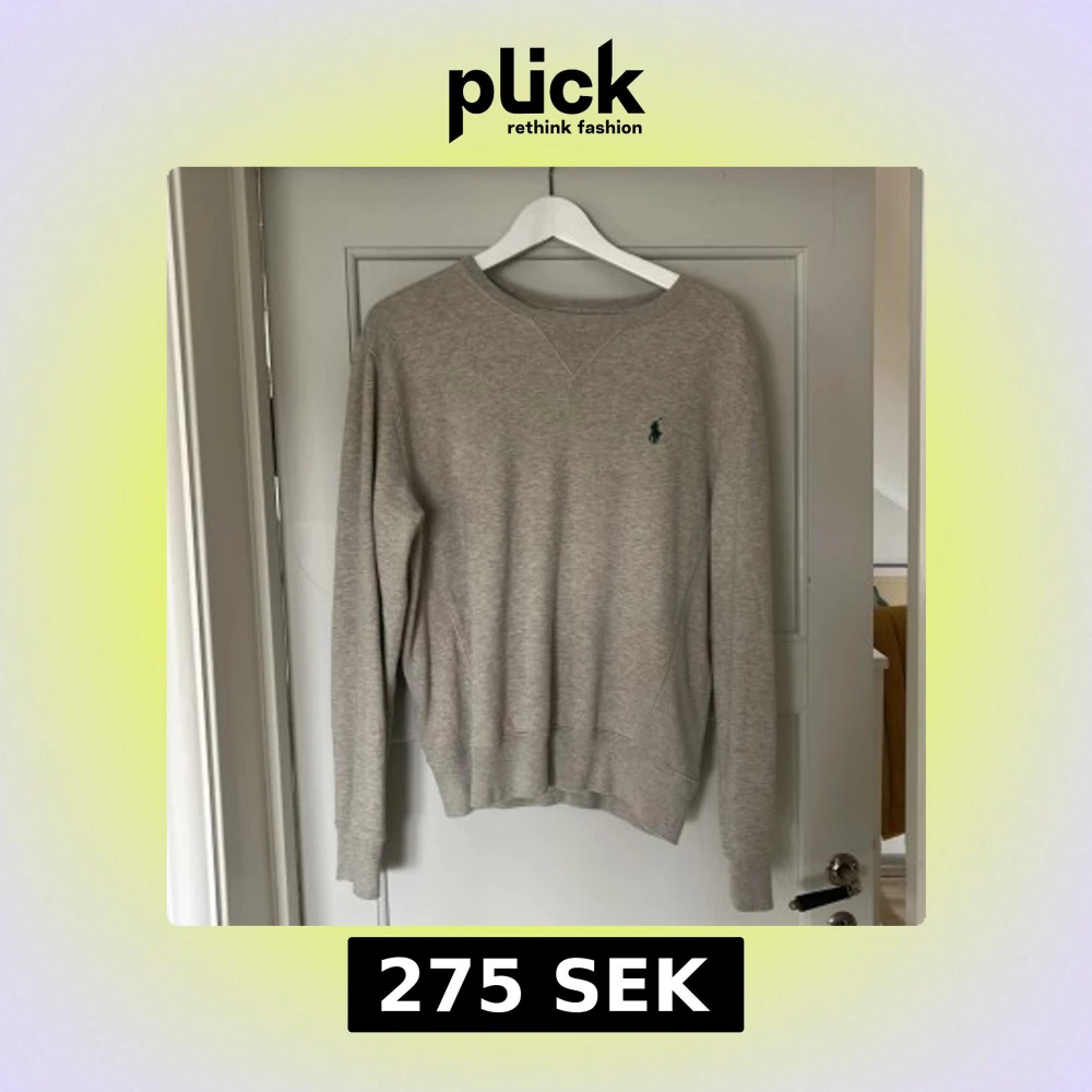 Klassisk grå sweatshirt från Polo Ralph Lauren med rund halsringning och broderad grön logga på bröstet. Tröjan har långa ärmar och ribbade muddar vid ärmslut och nederkant.