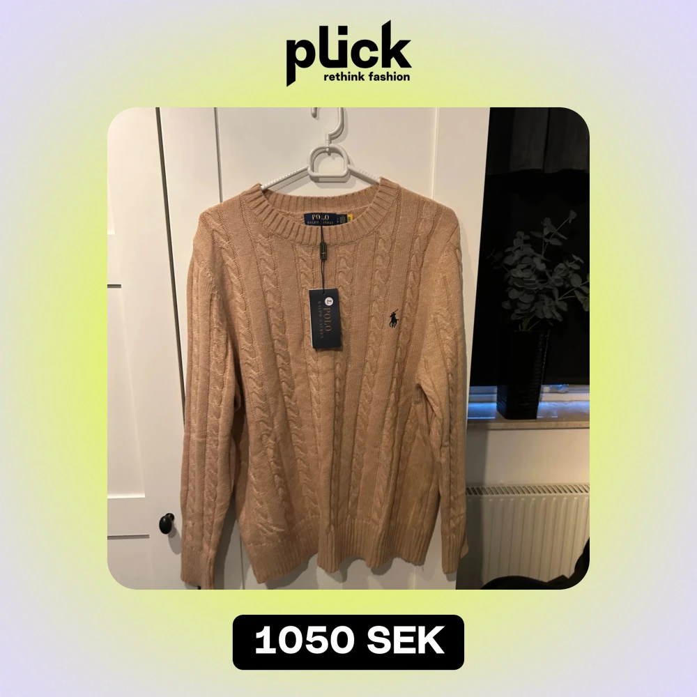 Säljer en snygg beige stickad tröja från Polo Ralph Lauren i storlek L. Tröjan har ett klassiskt flätmönster och den ikoniska loggan på bröstet. Perfekt för höst och vinter, och den är i helt nytt skick med taggar kvar. Supermysig och stilren för alla tillfällen!