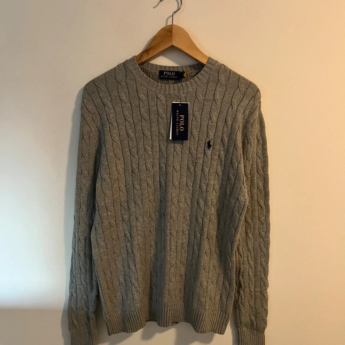 Snygg grå kabelstickad tröja från Polo Ralph Lauren. Storlek S. Tröjan är tillverkad i 100% bomull. Perfekt för dig som gillar stilrena och tidlösa plagg. Kontakta vid mer frågor eller funderingar🙌