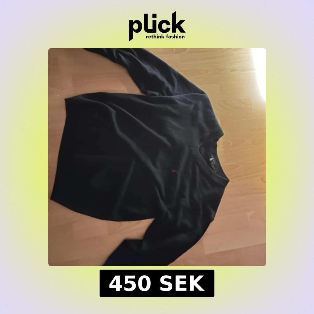 Säljer en elegant svart kashmirtröja från Ralph Lauren. Tröjan har en v-ringad design och ett diskret rött broderat märke på bröstet. Perfekt för en stilren look. Den passar S bäst