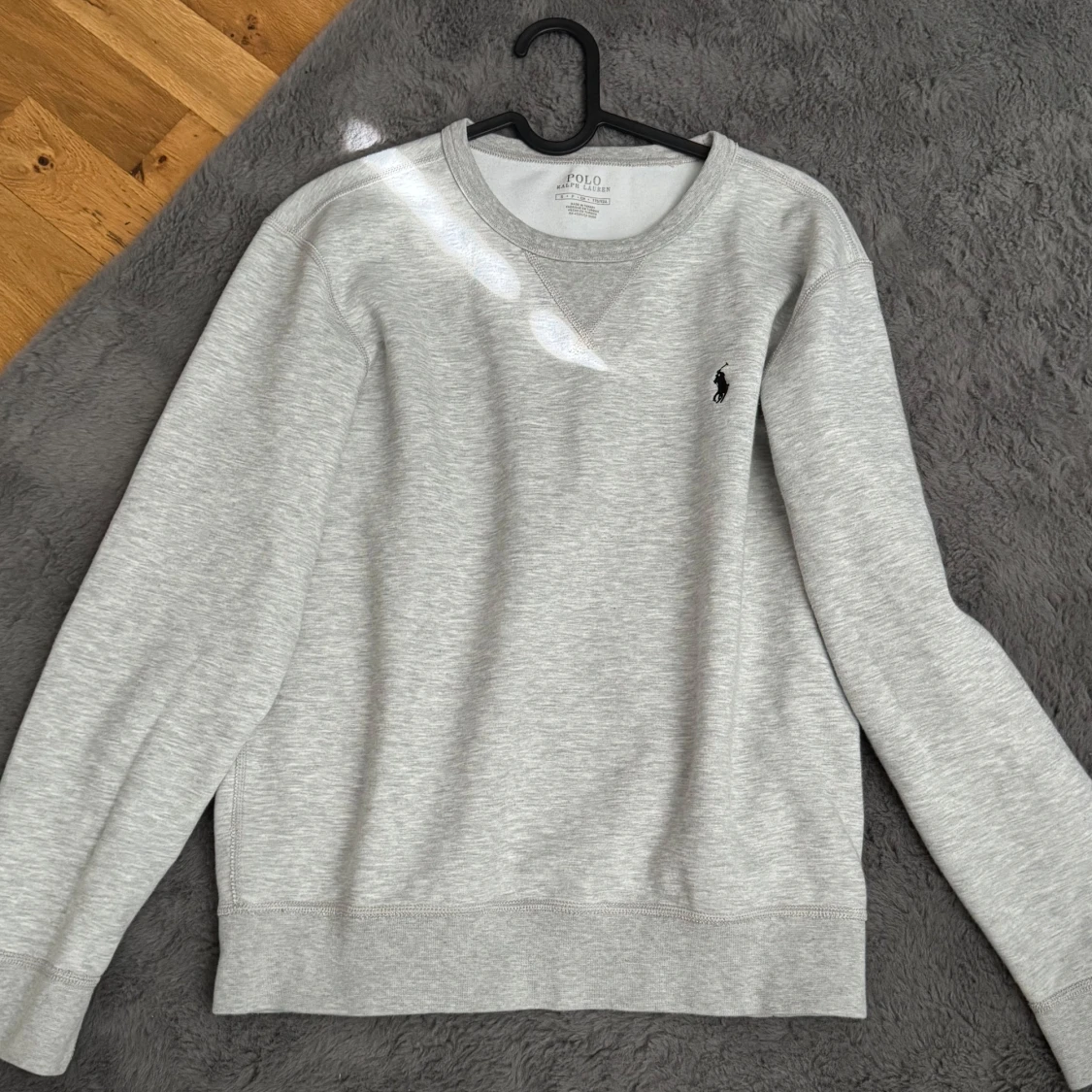Säljer denna tröjan då den inte passar längre. Ljusgrå sweatshirt från Ralph lauren. Skick 7/10. Perfekt för en avslappnad och stilren look.