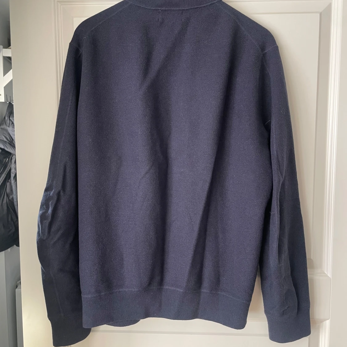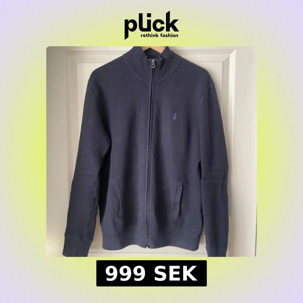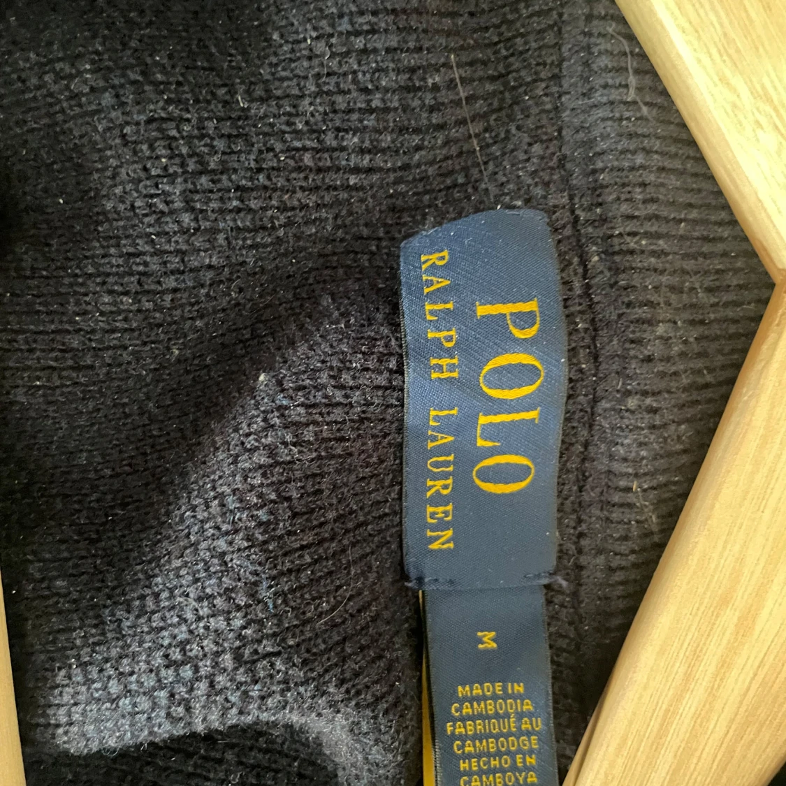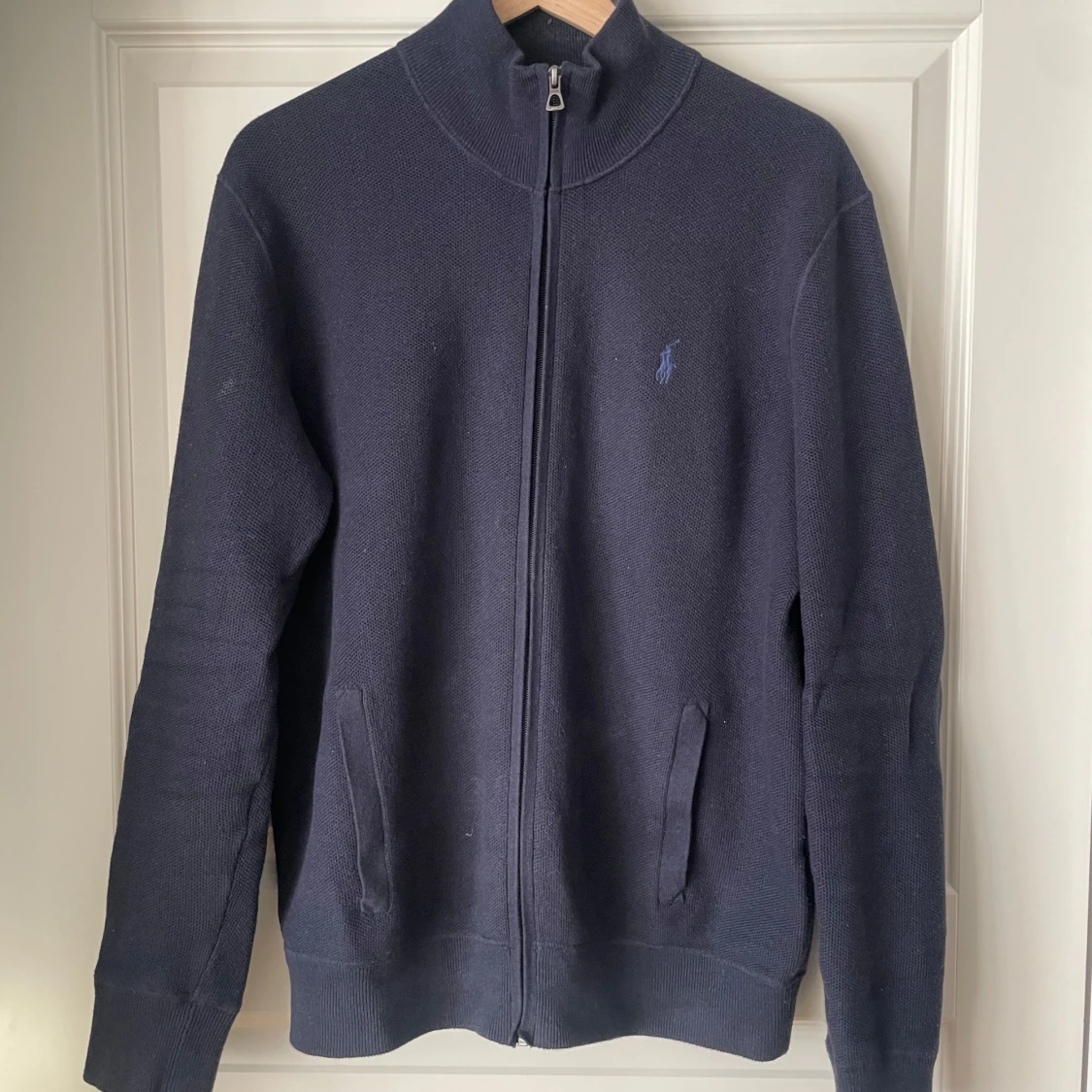 Säljer en stilren mörkblå tröja från Polo Ralph Lauren. Tröjan har en dragkedja framtill och långa ärmar. Perfekt för en avslappnad och snygg look.