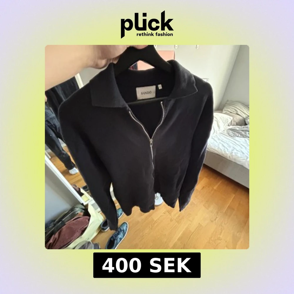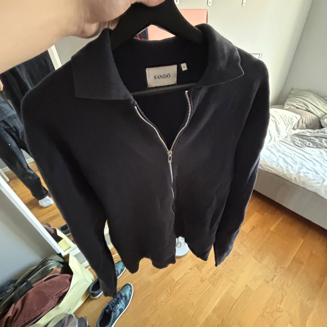 Snygg svart tröja från Sandö med dragkedja framtill. Perfekt för en stilren look. Tröjan har en klassisk krage och är tillverkad i ett mjukt material.