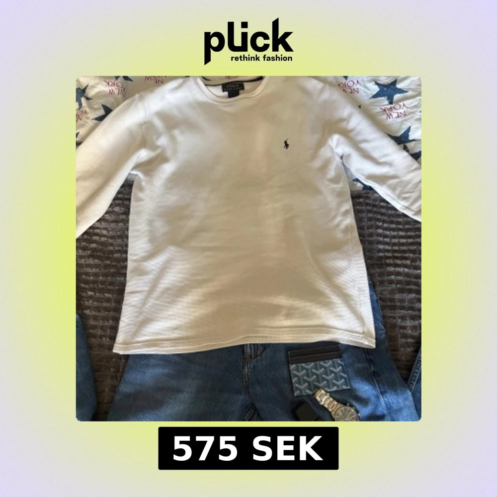 Vit långärmad tröja från Polo Ralph Lauren i storlek S. Tröjan är tillverkad i 100% bomull med en snygg, diskret struktur och har den klassiska broderade Polo-loggan i marinblått på bröstet. Perfekt för en clean och stilren look.