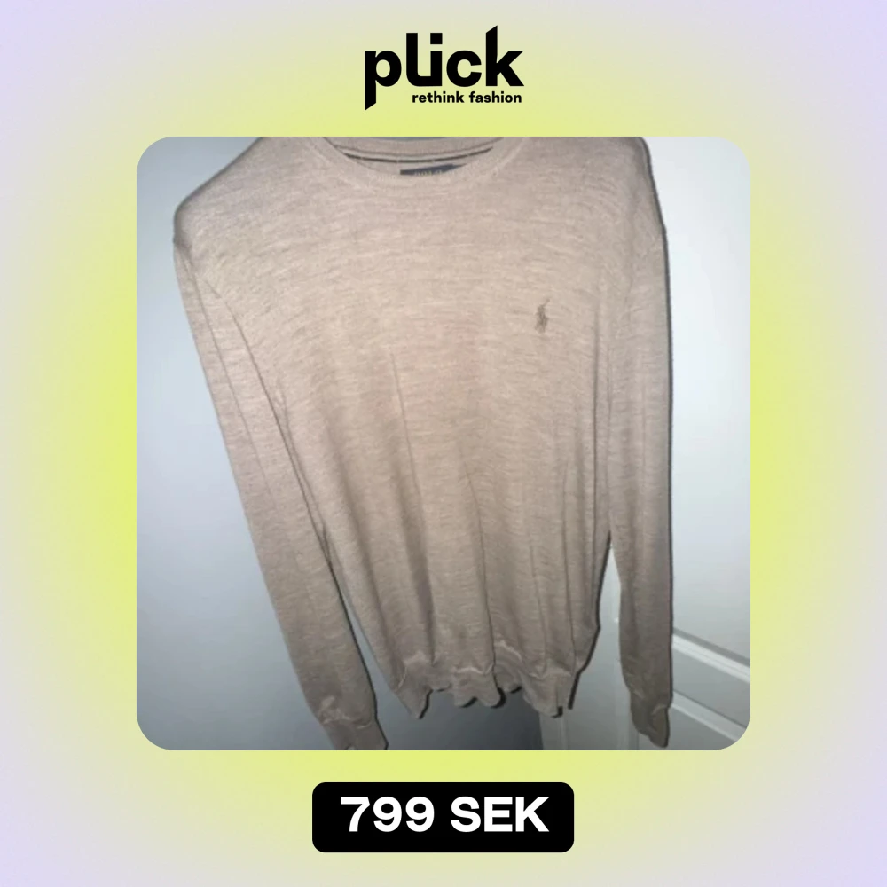Säljer en stilren beige tröja från Polo Ralph Lauren. Den är i slim fit och har långa ärmar. Perfekt för både vardag och lite finare tillfällen. Tröjan är i bra skick och har den klassiska loggan broderad på bröstet.