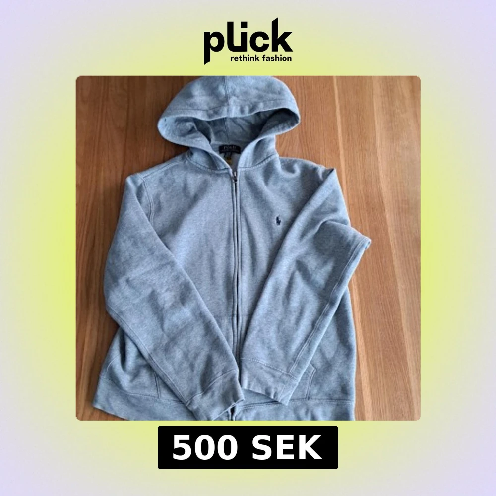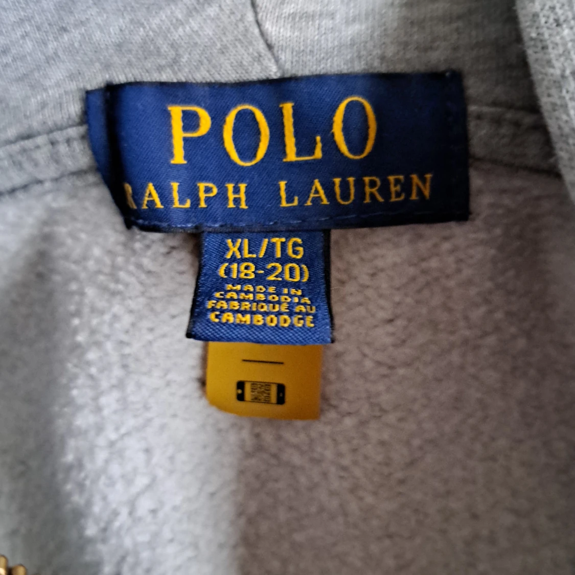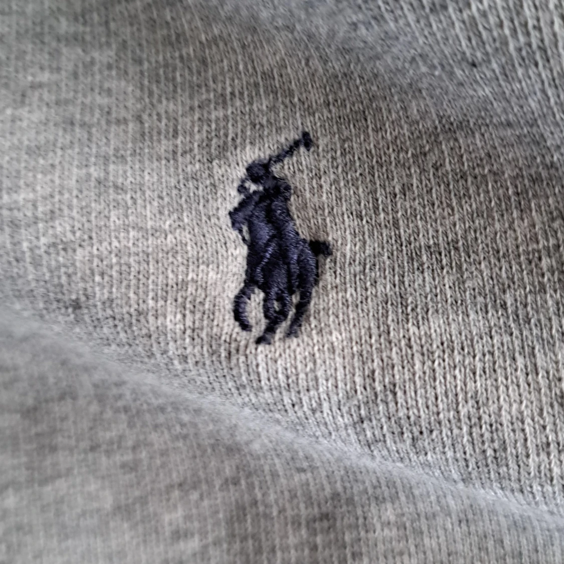 Säljer en stilren grå hoodie från Ralph Lauren med dragkedja och broderad logga på bröstet. Perfekt för en avslappnad look. Den har en klassisk passform och är tillverkad i mjukt material för extra komfort.