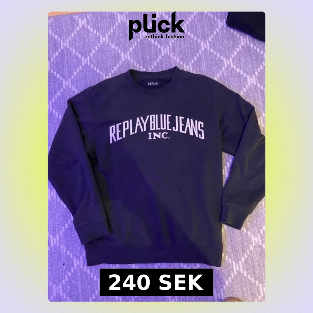 Cool svart sweatshirt från Replay Blue Jeans med vit tryckt logga på bröstet. Tröjan har rund hals, ribbade muddar vid ärmar och nederkant samt långärmad passform. Perfekt för dig som gillar streetwear och enkel stil.🤟🏽🤟🏽
