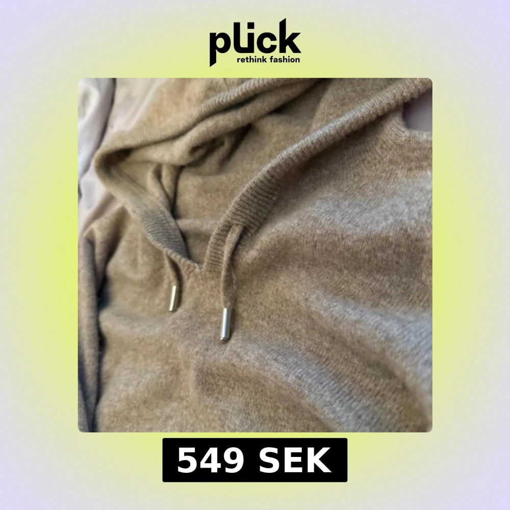 beige kashmir hoodie med huva och snörning med silvriga detaljer. Tröjan har lång ärm och ribbade muddar vid ärmslut och nederkant. Perfekt för dig som gillar en chill och enkel stil. Passar S men är lite i storleken