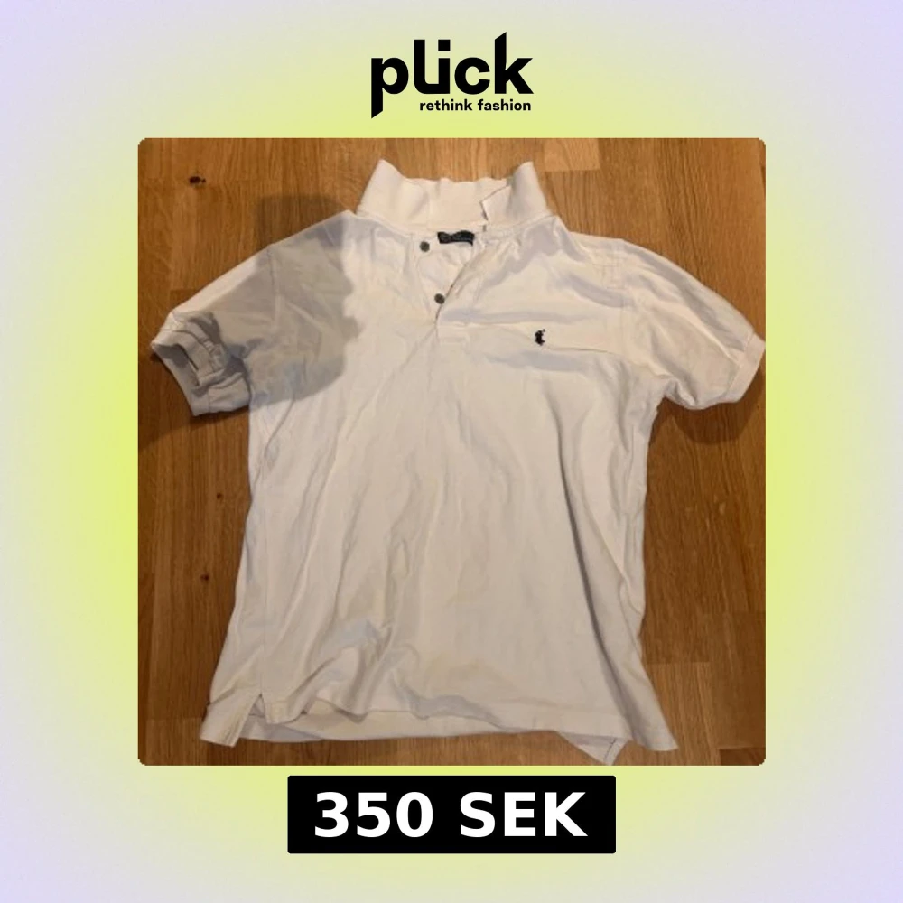 Snygg vit pikétröja med klassisk krage och knappar framtill. Tröjan har en liten broderad RL loggo på bröstet och korta ärmar. Perfekt för en avslappnad stil. Storlek L men passar perfekt till M.
