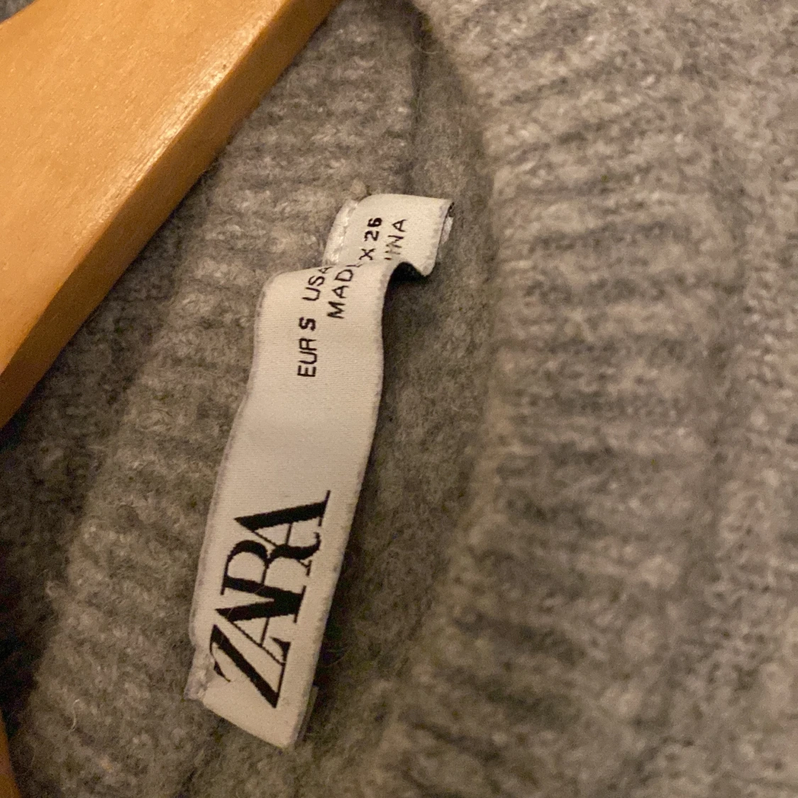 Säljer en stilren grå stickad tröja från Zara. Perfekt för kyligare dagar med sin mjuka och bekväma passform. Tröjan har långa ärmar och ribbade kanter vid ärmslut och nederkant. Ett måste i garderoben för en klassisk look. Kostade originellt 300