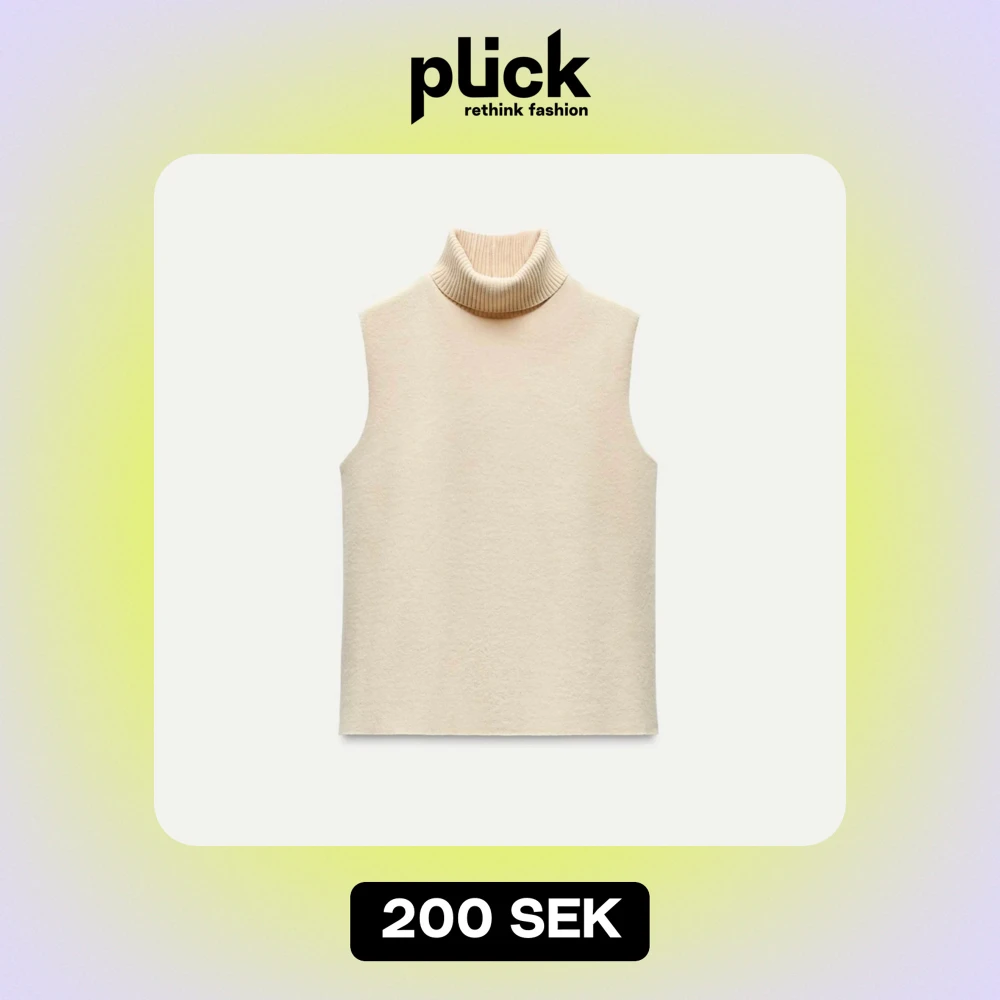 Säljer en stilren beige ärmlös polotröja. Perfekt för lager-på-lager under höst och vår. Den har en mjuk och bekväm passform med en hög polokrage som ger en elegant touch. Passar både till vardags och lite finare tillfällen.