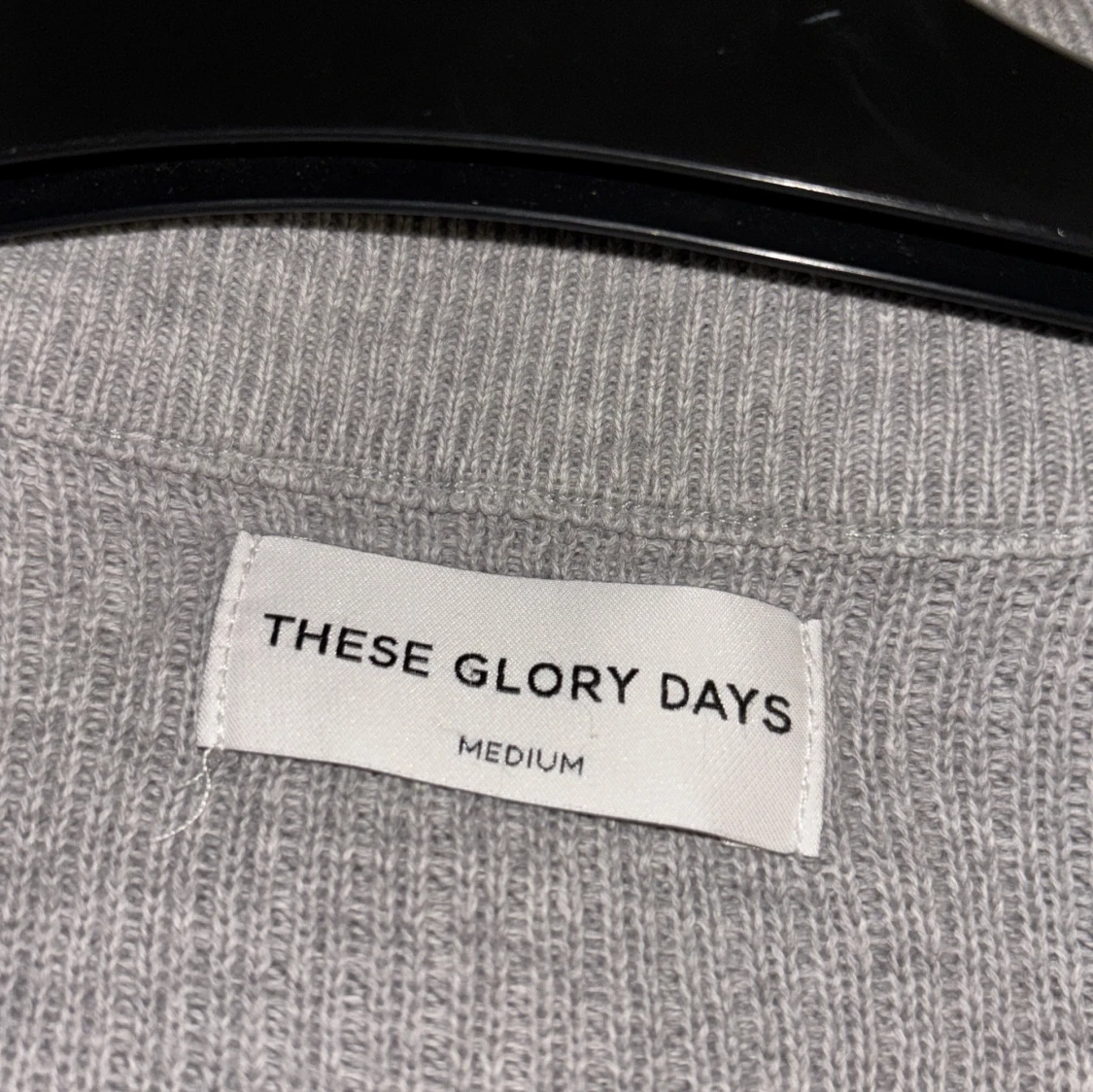 Säljer en stilren grå stickad tröja från These Glory Days. Tröjan har en dragkedja vid halsen och långa ärmar. Perfekt för kyligare dagar. Inga tecken utav användning eller förutom (se sista bilden).