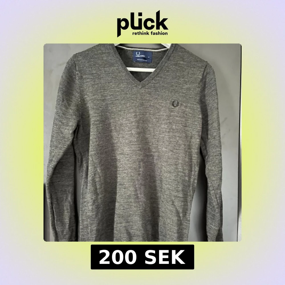 Säljer en klassisk grå v-ringad tröja från Fred Perry i 100% merinoull. Tröjan har långa ärmar, broderad logga på bröstet och ribbade muddar vid ärmslut och nederkant. Perfekt för en stilren och enkel look! Har två lagningar, en i mudden och en i nacken.