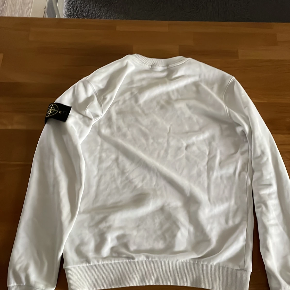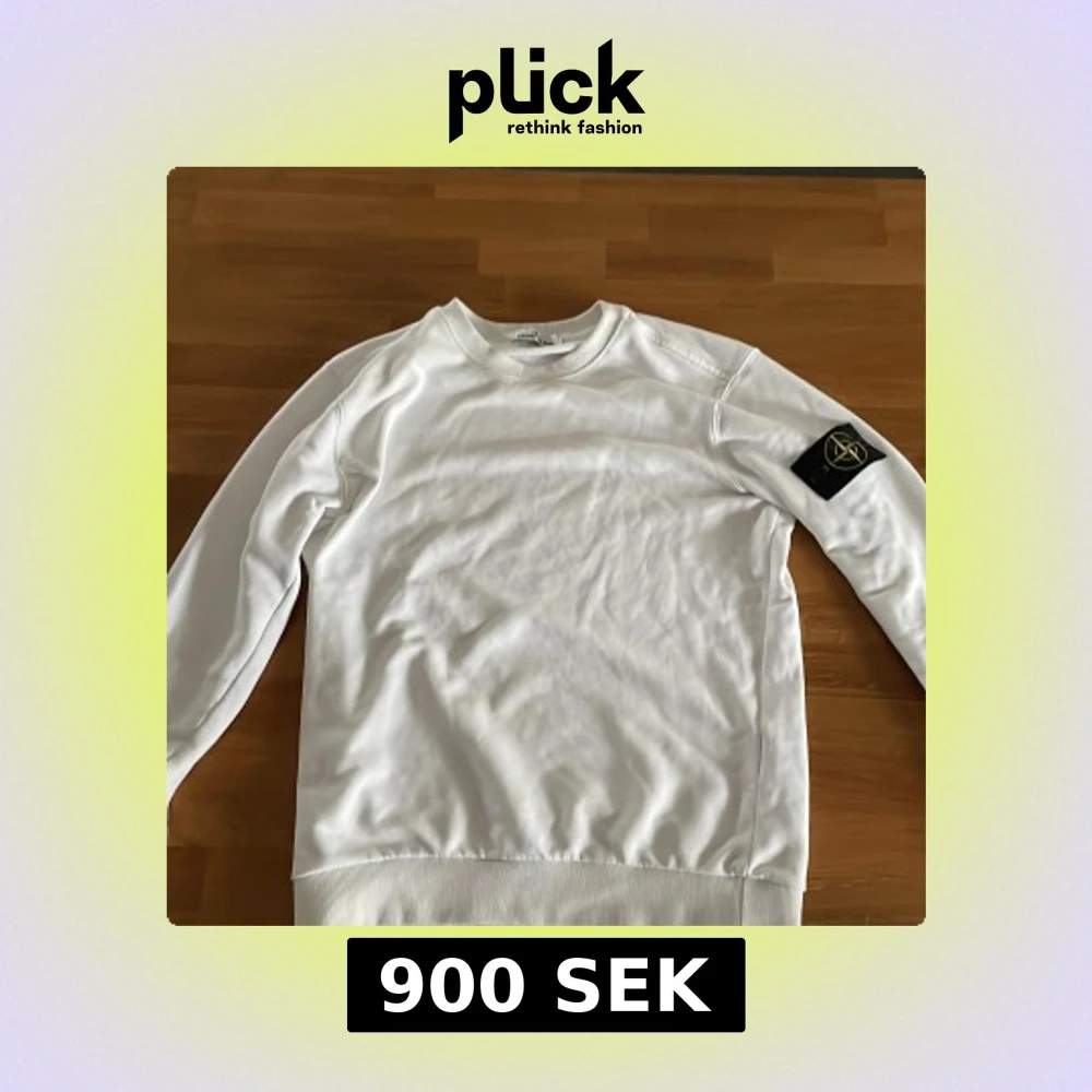 Säljer en stilren vit sweatshirt från Stone Island med klassisk patch på vänster ärm. Tröjan har rund halsringning, långa ärmar och ribbade muddar vid ärmslut och nederkant. Perfekt för en clean och avslappnad look. 100% äkta sälj för 900 kr, säljer den för den har blivit för liten för mig, pris kan diskuteras👍. Hör av er vid minsta fundering