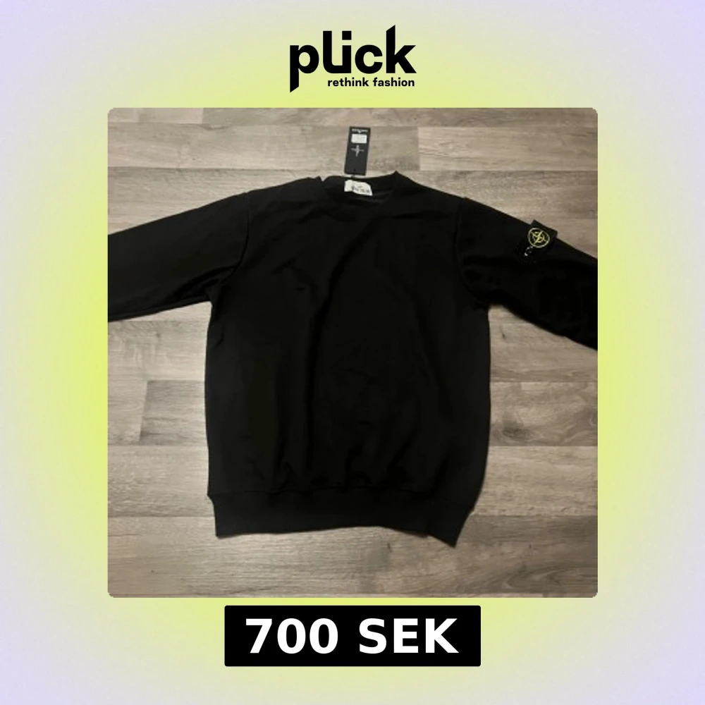 Svart sweatshirt från Stone Island med klassisk rund hals och ribbade muddar. Ikonisk logotyp-patch på vänster ärm med gul och grön brodering. Tröjan är tillverkad i mjuk bomull och har en clean, stilren look som passar perfekt till streetwear.