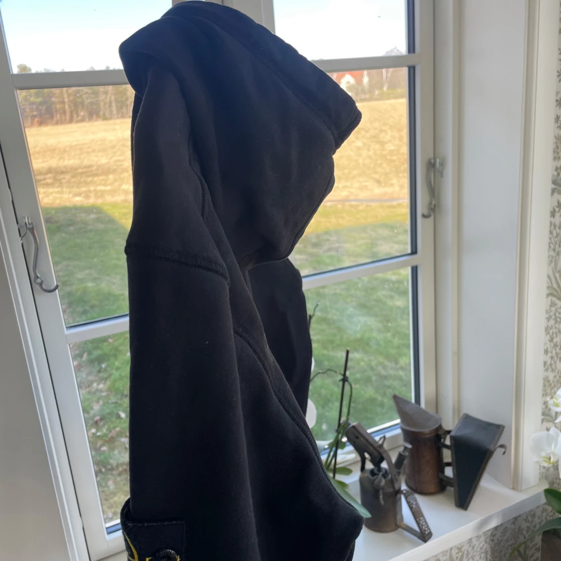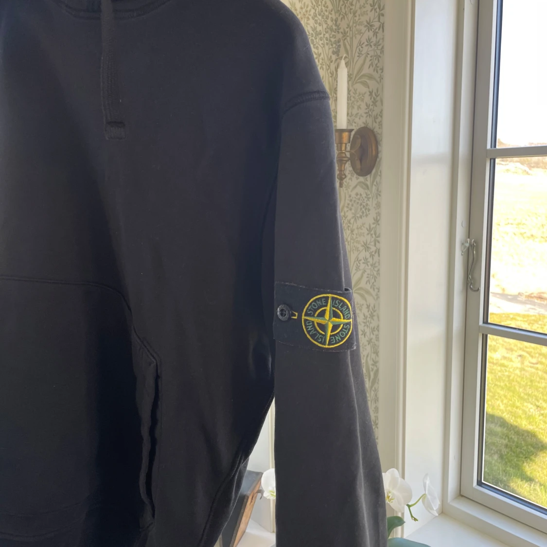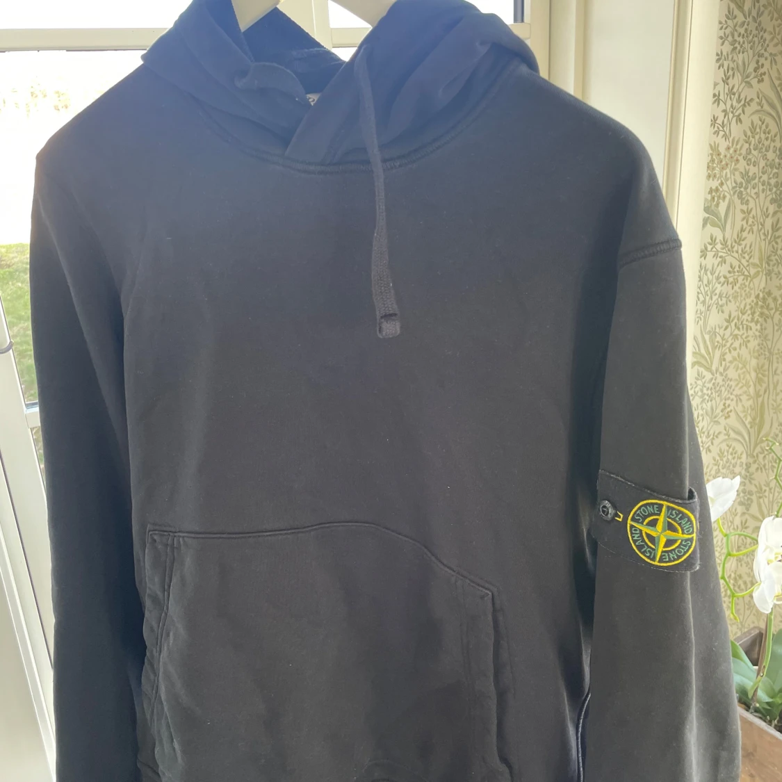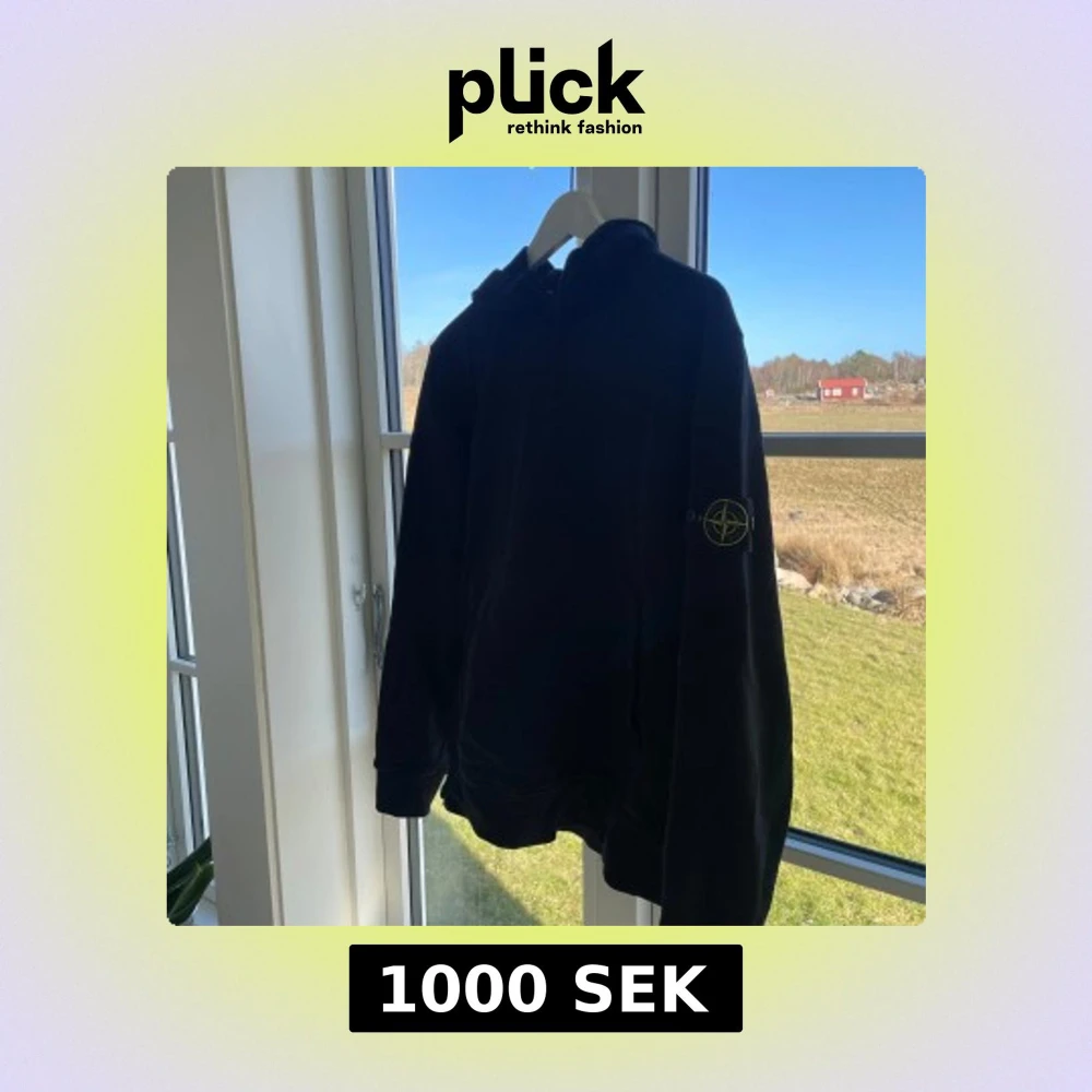 Säljer en svart hoodie från Stone Island med deras ikoniska märke på ärmen. Inköpt på nk 2024 så kvitto samt tags finns kvar, storlek M så passar S/M. Fint cond tvättad en gång endast