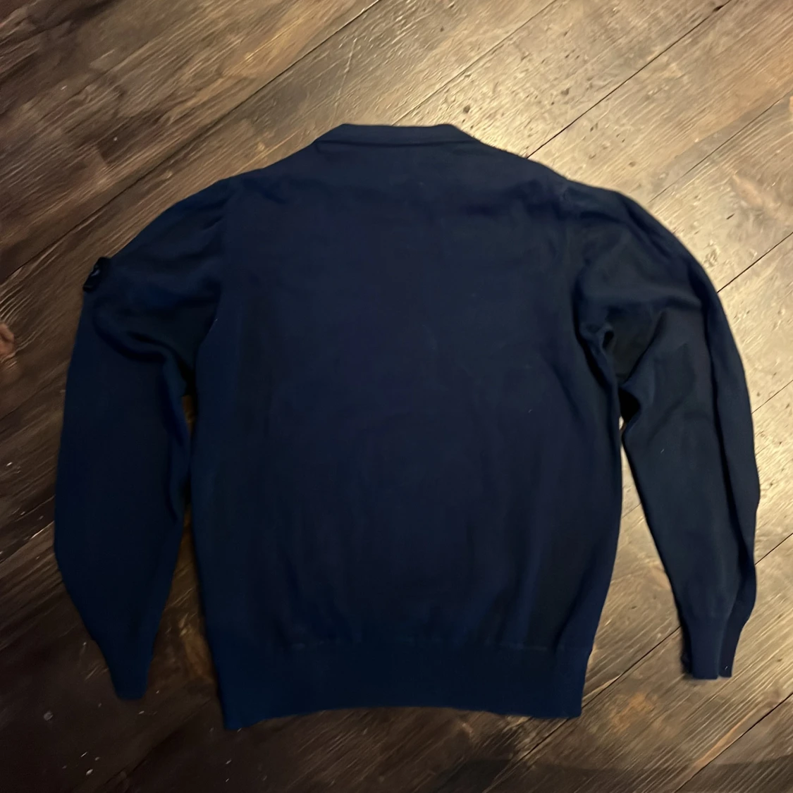 Säljer en mörkblå långärmad tröja från Stone Island. Tröjan har rund halsringning, ribbade muddar och den klassiska Stone Island-loggan på vänster ärm. Perfekt för dig som gillar stilrena och exklusiva plagg. Nypris 2700kr. Sytt lite själv vid kragen som du ser vid sista bilden inget man märker vid användning. Tveka inte att höra av dig vid minsta fundering