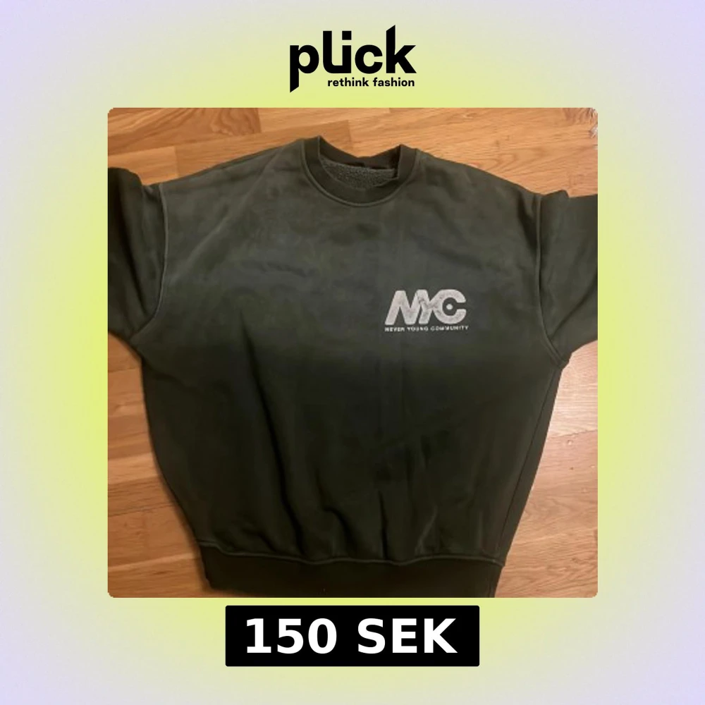Cool grön sweatshirt från Never Young Community med tryck både fram och bak. Perfekt för en avslappnad stil. Rund hals och ribbade muddar ger en fet look. Storlek s men passar som m och pushar L. Endast använd 1 gång.