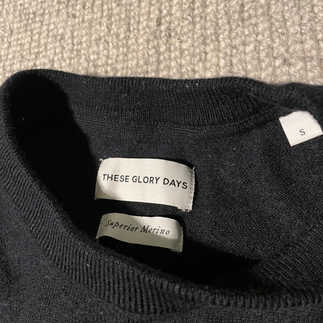 Klassisk svart rundhalsad tröja från These Glory Days i mjuk och lyxig merinoull. Långärmad modell med ribbade muddar och enkel, stilren design som funkar till allt. Perfekt för lager-på-lager under kyliga dagar. Pris kan diskuteras. Hör av er vid eventuella frågor