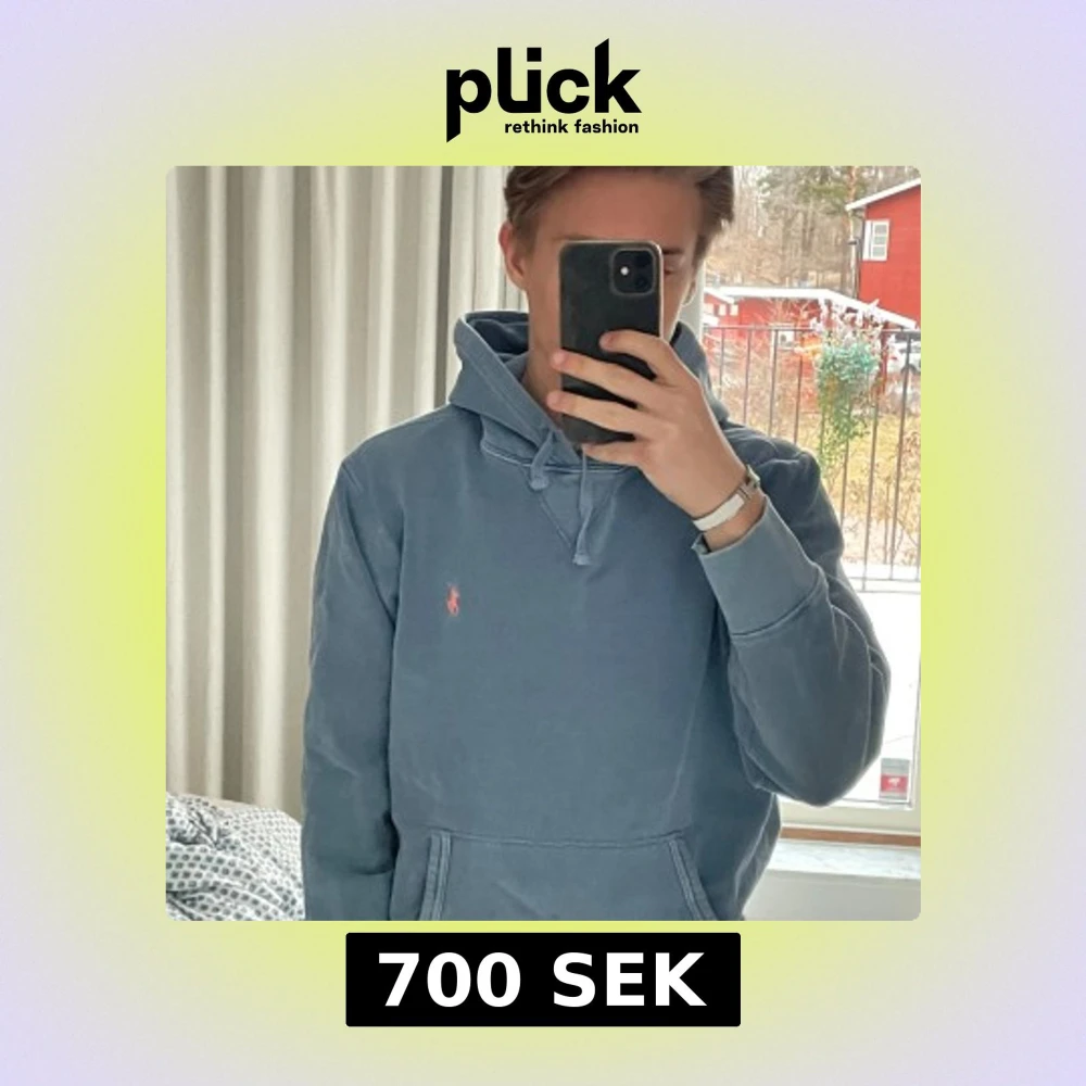 Säljer en snygg blå hoodie från Ralph Lauren med det klassiska logotypbroderiet på bröstet. Tröjan har en bekväm passform med långa ärmar och en praktisk huva med dragsko. Perfekt för en avslappnad stil.
