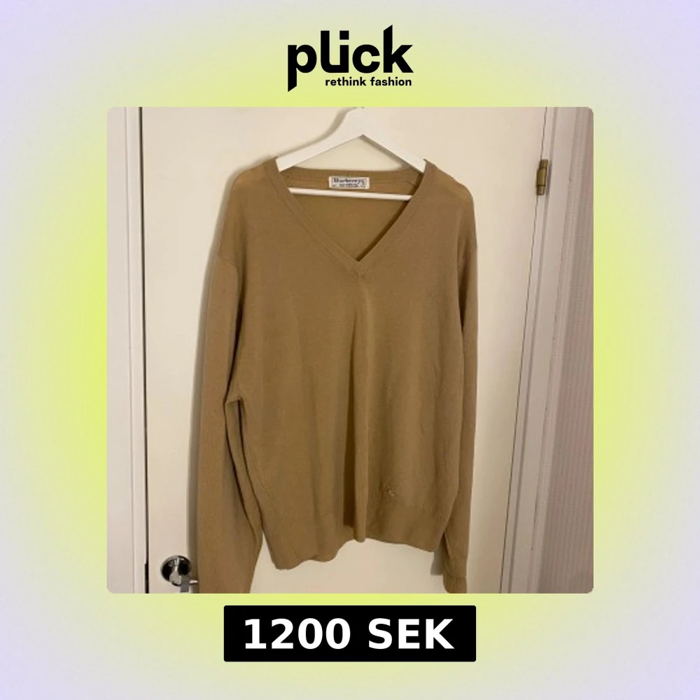 Priset är diskuterbart vid snabb affär!! Vintage, klassisk beige v-ringad tröja från Burberrys i 100% merinoull, tillverkad i Skottland. Tröjan har lång ärm, diskret broderad logga på ena sidan och en clean, tidlös look.