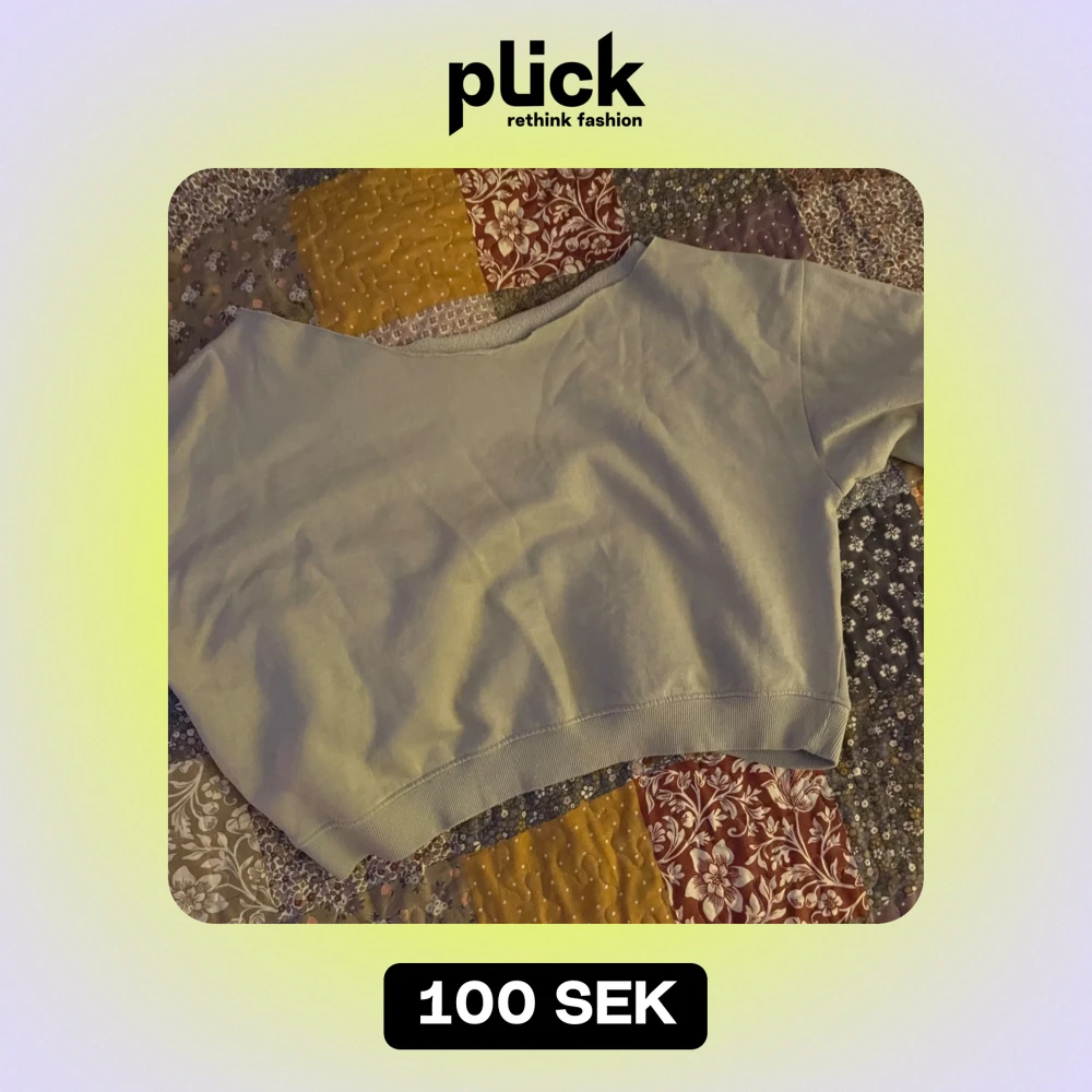 Säljer en supermjuk och bekväm ljusgrön croppad tröja. Perfekt för en avslappnad look med en offshoulder-stil. Tröjan har korta ärmar och är gjord i ett skönt bomullsmaterial.