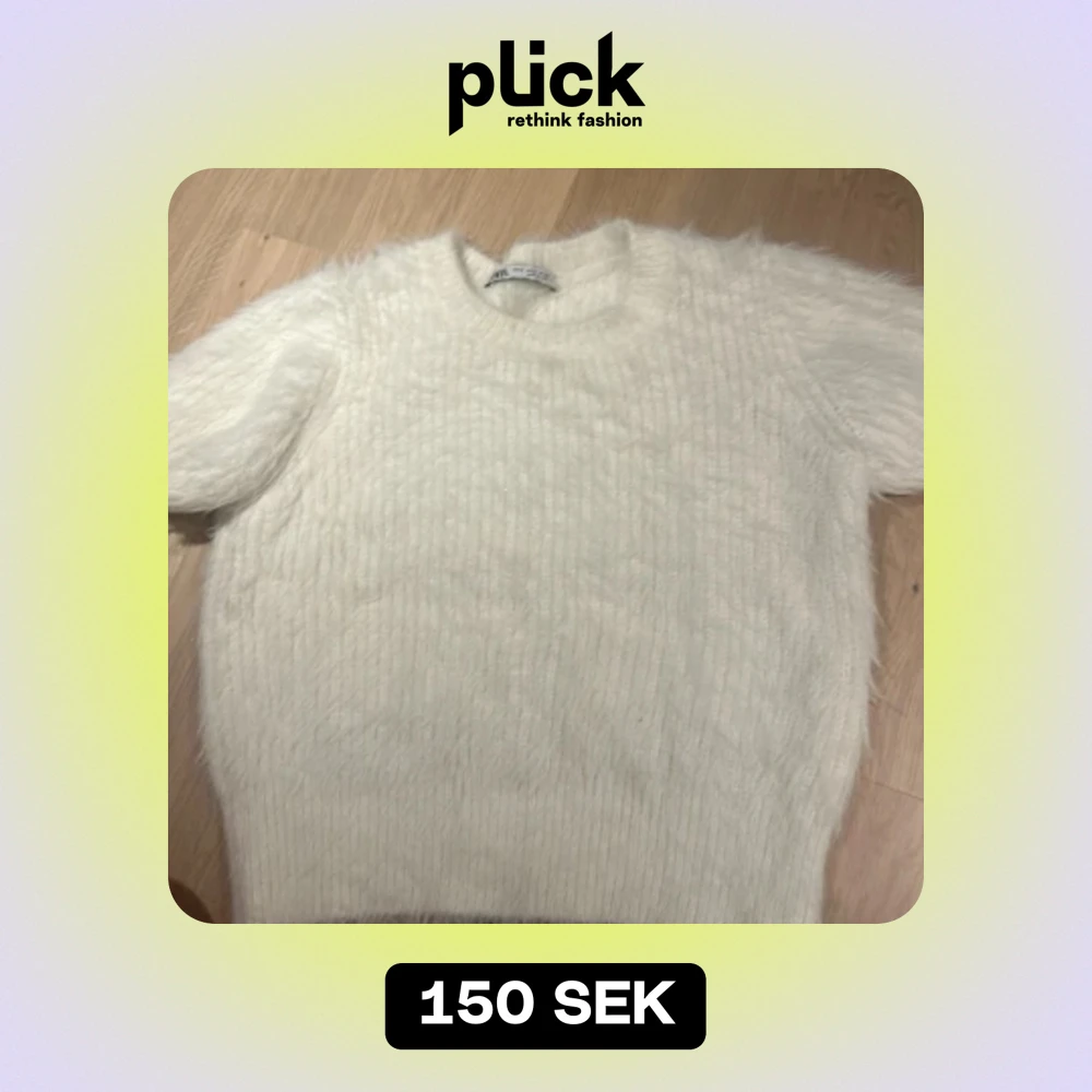 Säljer en supermjuk och fluffig vit tröja från Zara. Den är perfekt för att hålla sig varm och stilren under kyliga dagar. Tröjan har en croppad passform och korta ärmar, vilket gör den både trendig och bekväm. Passar xs! Då de är min storlek