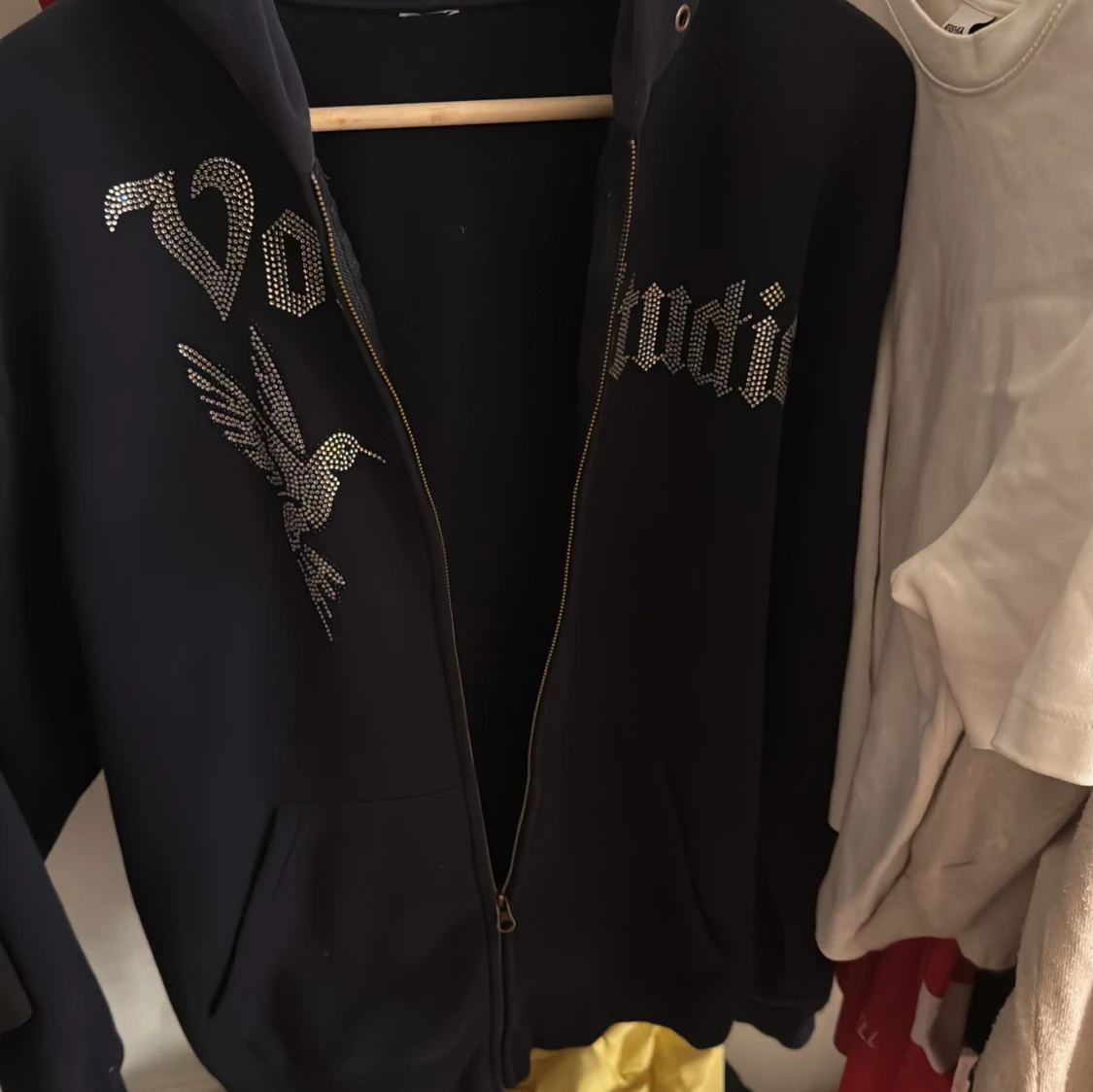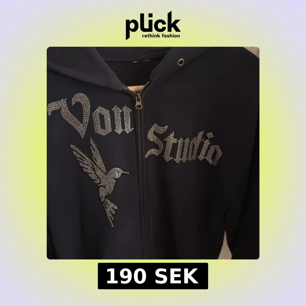 Svart hoodie från Von Studio med dragkedja och huva. I fint skick och har inga slitningar. Lappen är tyvärr borta men storleken är mellan M-L. Hör av er vid funderingar