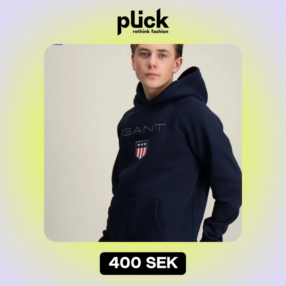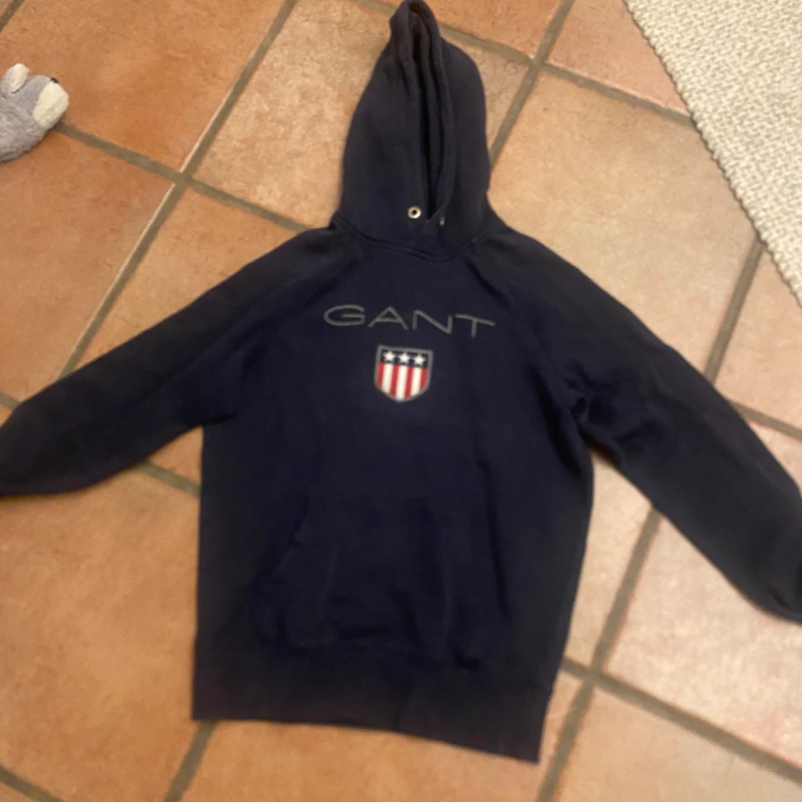 Säljer en snygg mörkblå hoodie från GANT med deras klassiska logga i storlek s. Är i mycket bra skick och nypris är 1000, mitt pris är 400