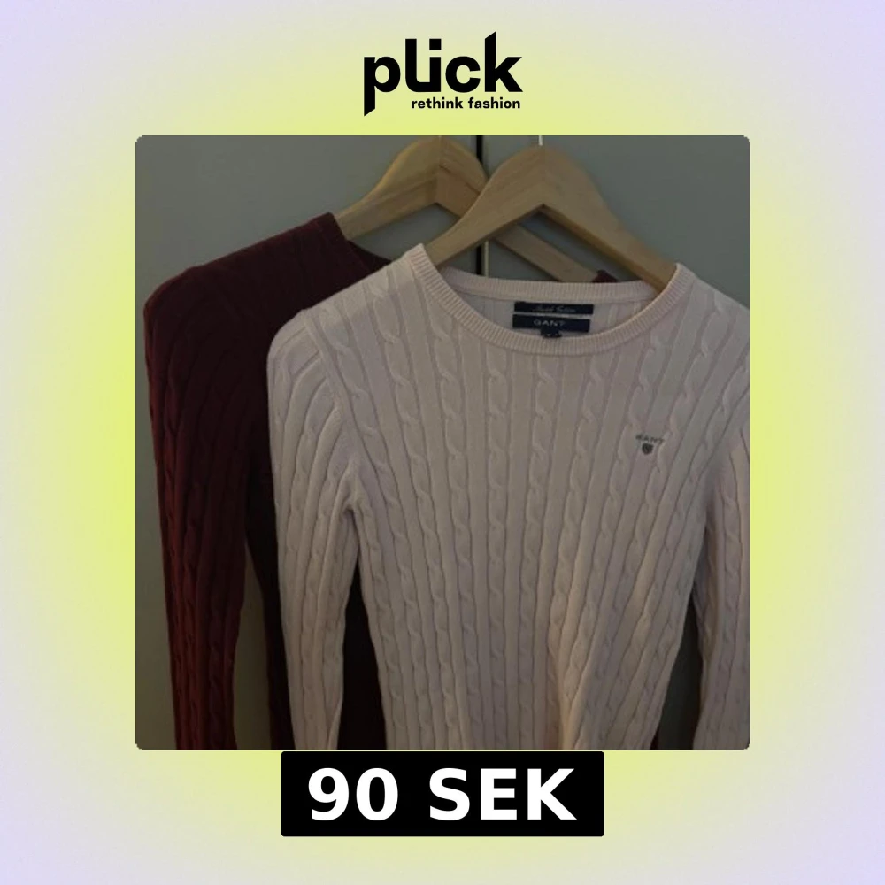 Två kabelstickade tröjor från GANT i storlek S. En i ljusrosa och en i vinröd. Superträndiga och i väldigt bra skick. 90 kronor tillsamans och 50kr styck!