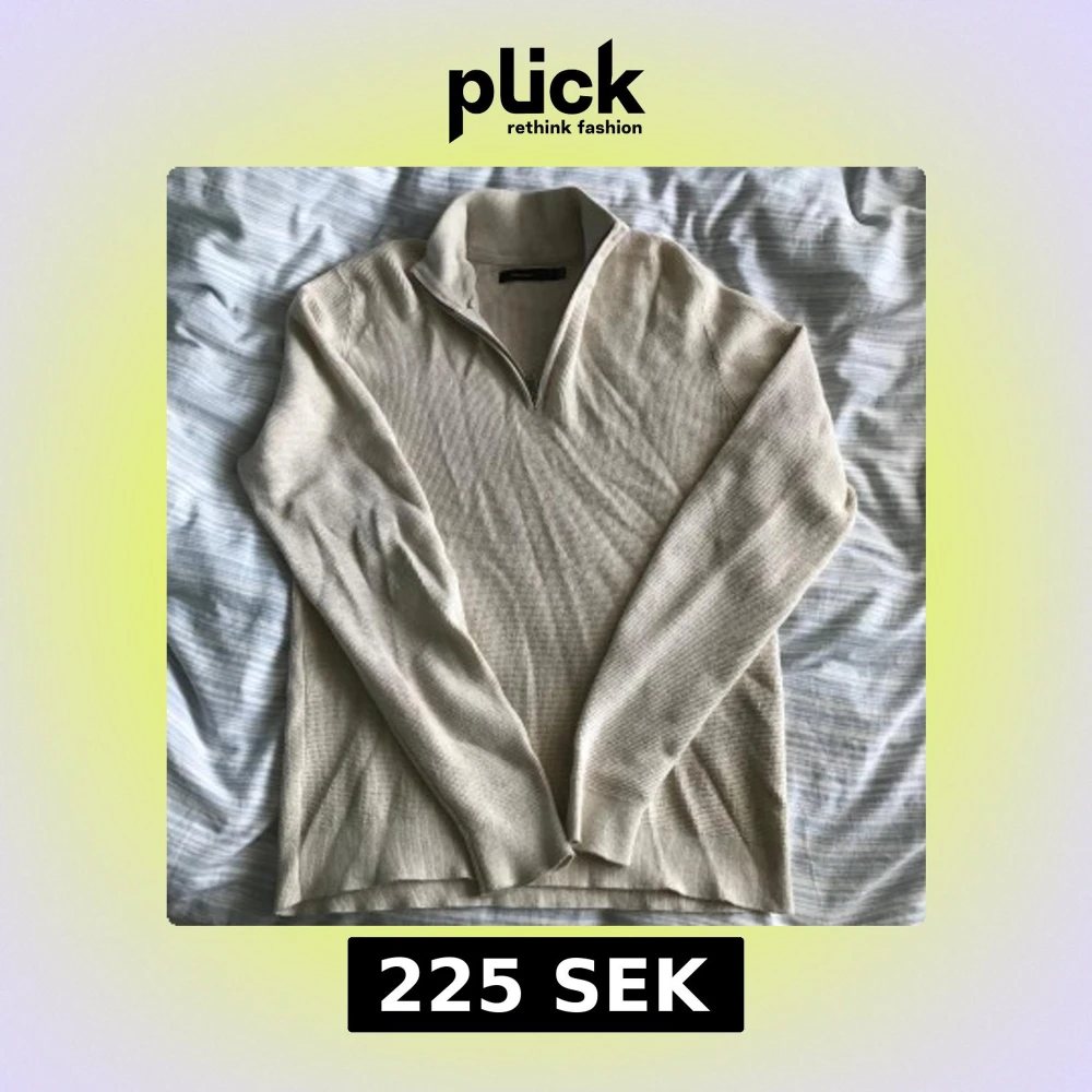 Säljer en stilren beige stickad tröja från Matinique med dragkedja vid halsen. Tröjan har långa ärmar och en mjuk, bekväm passform. Perfekt för kyligare dagar.