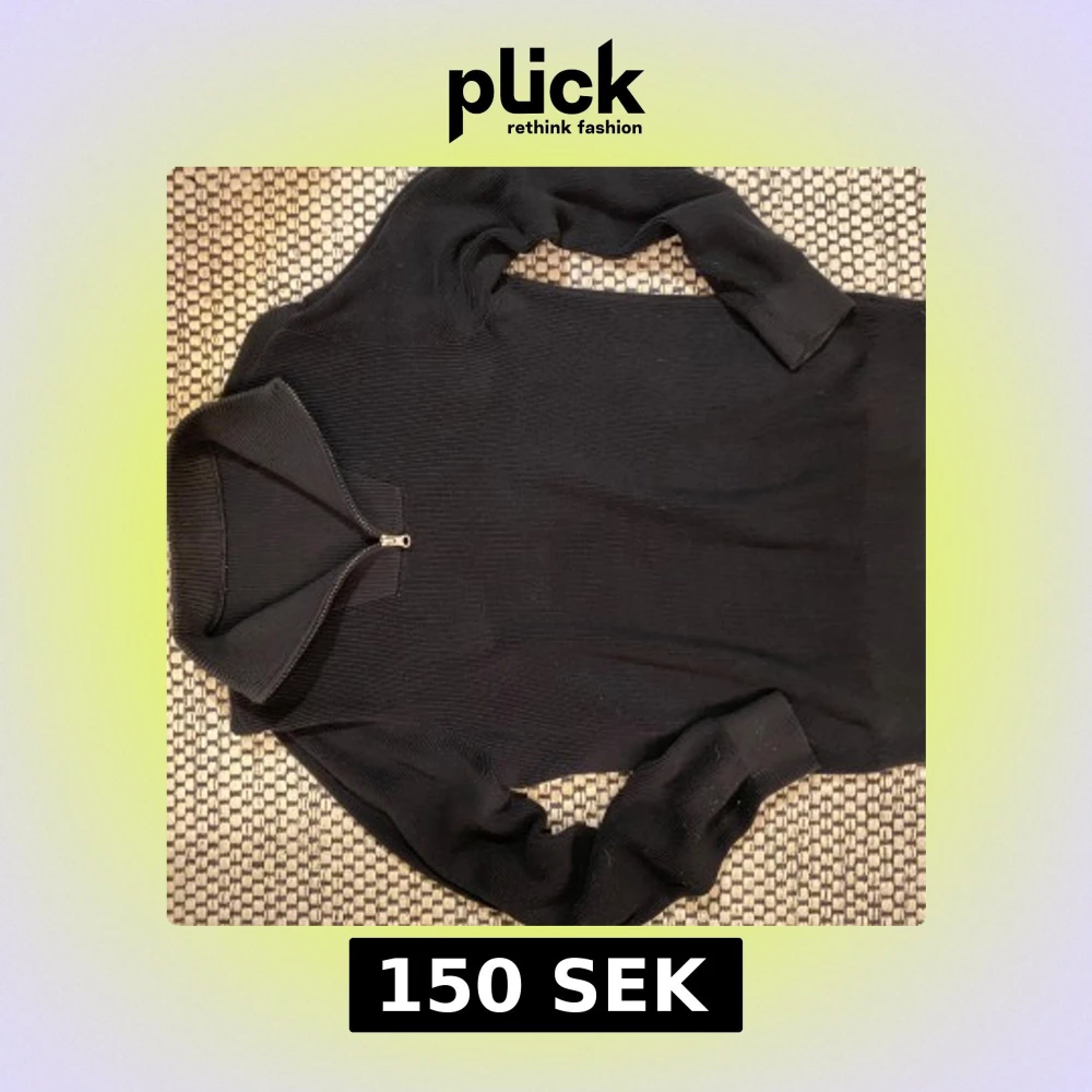 Svart polotröja i ribbad bomull med half zip-dragkedja vid halsen. Tröjan har lång ärm och en stilren, enkel design som funkar till många olika looks. Materialet är 100% bomull och känns mjukt mot huden. Perfekt för dig som gillar minimalistisk stil. Jag har tyvärr tagit bort lappen så jag vet inte vilket märke eller storlek de är. Men jag tror jag köpte den på H&M. Den passar folk som är runt 155-175cm långa.