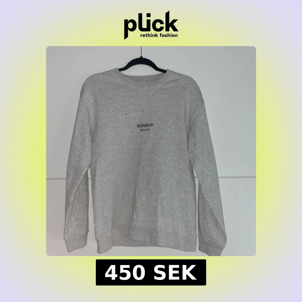 Säljer en stilren grå sweatshirt från Dondup med diskret logga på bröstet. Tröjan har rund halsringning och långa ärmar. Perfekt för en avslappnad och trendig look.