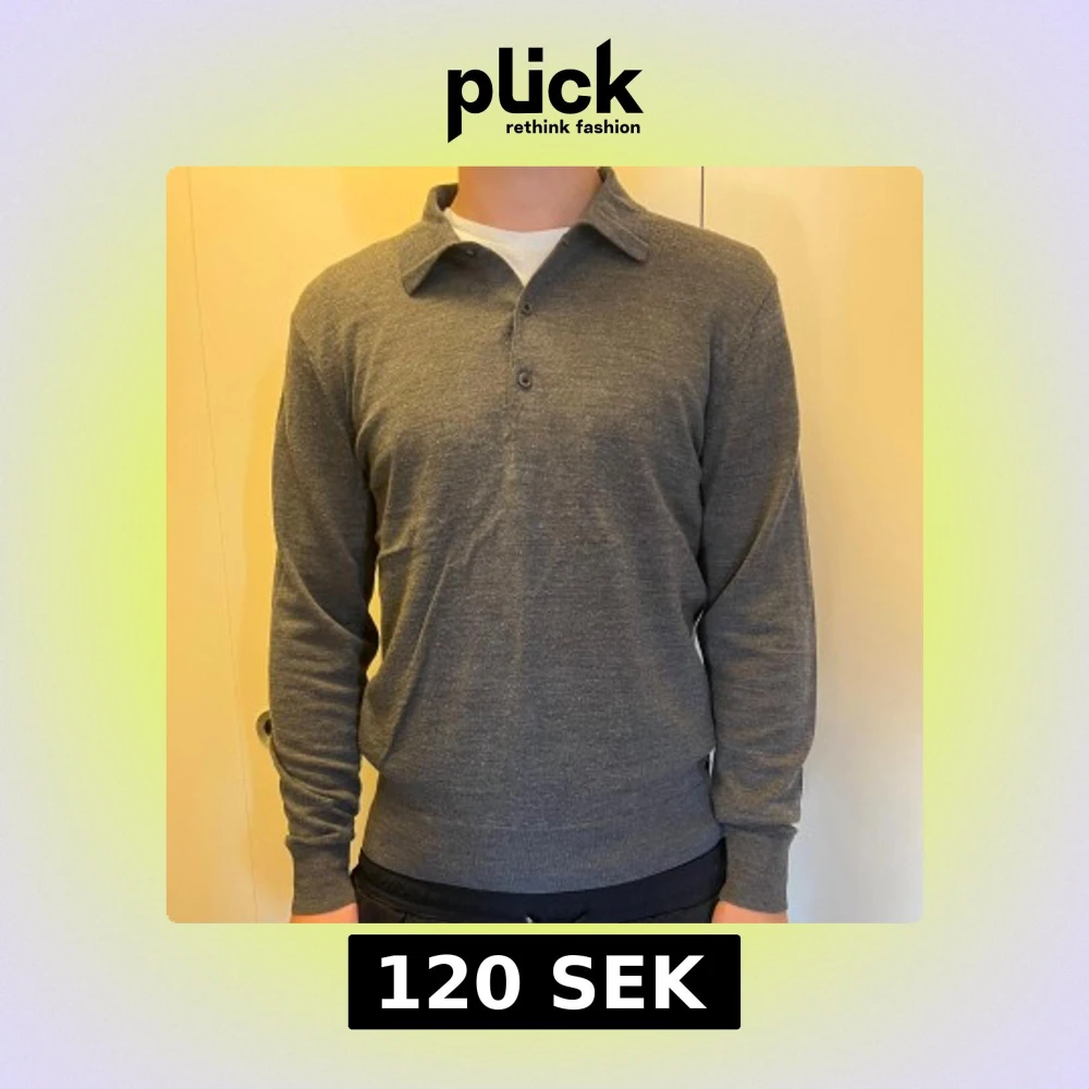 Säljer en stilren grå pikétröja från Uniqlo med klassisk krage och två knappar framtill. Tröjan är långärmad och har en mjuk, stickad känsla som gör den skön att bära. Perfekt för dig som gillar enkel och clean stil.