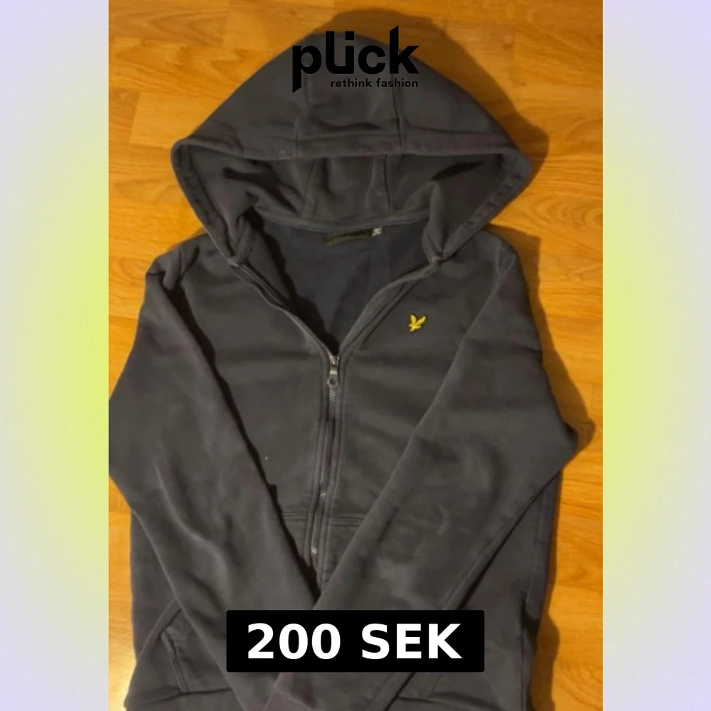 Snygg marinblå hoodie från Lyle & Scott med gul broderad logga på bröstet. Tröjan har huva, dragkedja framtill och två fickor. Tillverkad i mjuk bomullsmix som är skön att ha på sig. Perfekt för chill dagar eller när du vill ha en enkel och stilren look.