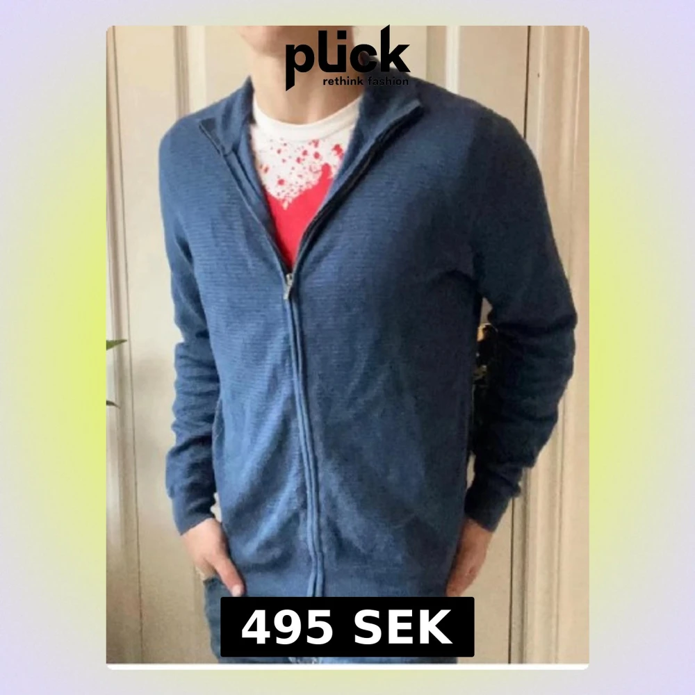 Storlek M Snygg blå kofta från Massimo Dutti i bomull och kashmir. Modellen har lång ärm, ribbad krage och hel dragkedja framtill. Perfekt att slänga på sig när det är lite kyligt ute. Enkel, stilren och skön passform som funkar till jeans eller chinos.