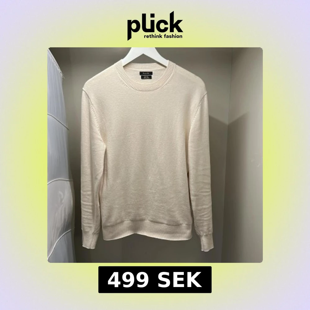 Snygg beige stickad tröja från Massimo Dutti i en mjuk blandning av bomull och ull. Tröjan har rund hals, ribbade muddar och långärmad passform. Perfekt för dig som gillar stilrena och enkla plagg med en clean vibe.