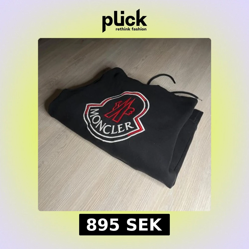 Säljer en svart stilren Moncler hoodie med bra kvalitet och nästan oanvänd. Tröjan är i storlek S och köpt för cirka 2500kr